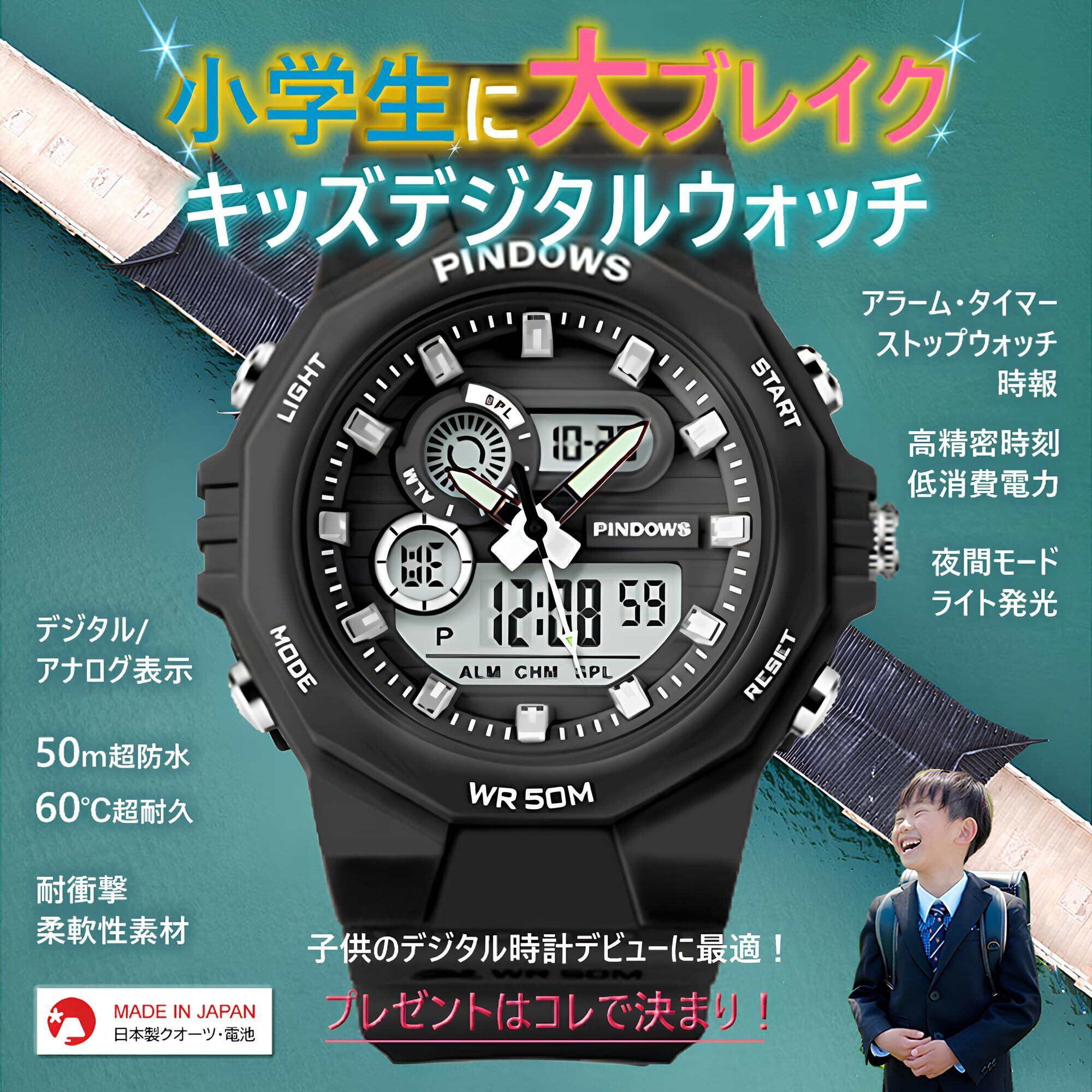 【在庫処分】子供腕時計 キッズ腕時計 デジタル腕時計 女の子男の子 アウトドア多機能防水 アラート 日付曜日表示 LED アナログ表示 デジタルウォッチ 入学祝い クリスマス 誕生日 プレゼント (ブラック) | Cherry Blossoms