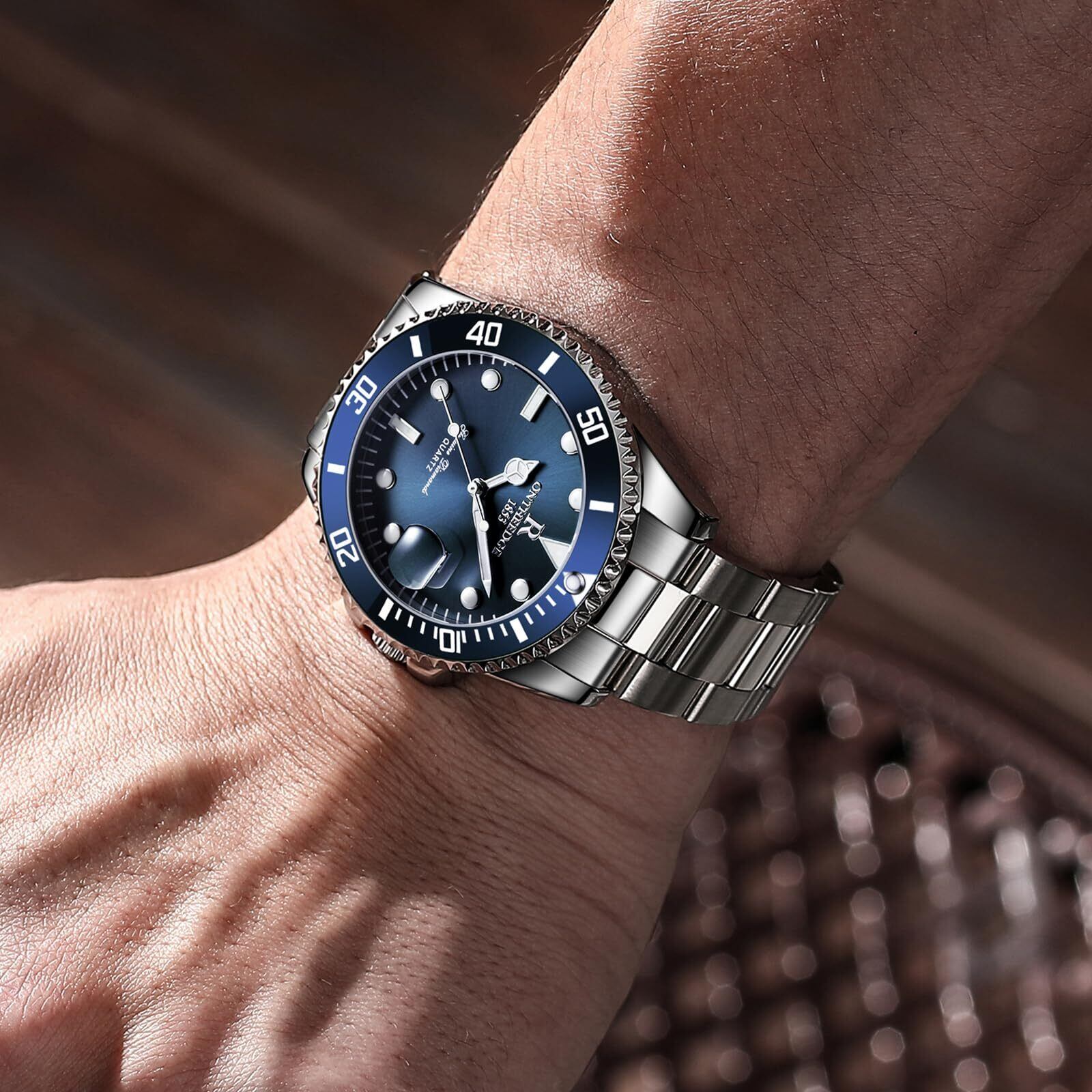 腕時計 メンズ watch for men アナログ クオーツ うて時計 安い 3気圧日常生活防水 ステンレス 回転ベゼル 日付 蓄光 人気 おしゃれ ビジネス シンプル かっこいい 文字盤の大きい サブマリーナ 男性 紳士 就活 記念日 誕生日 (ブルー)