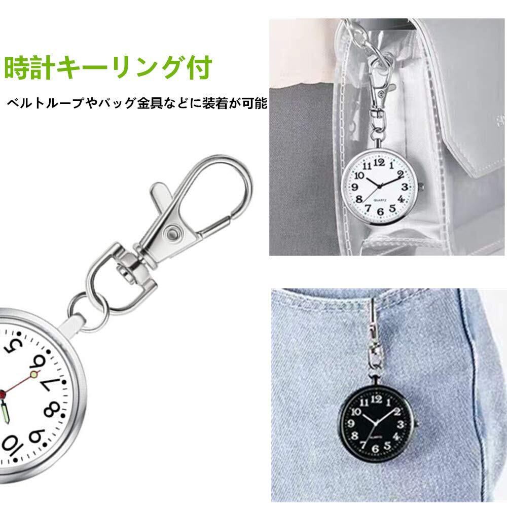 YFFSFDC ナースウォッチ 懐中時計 小型 シンプル キーホルダー ポケットウォッチ 数字 見やすく大きい 文字盤 夜光 クオーツ 男女兼用 (シルバー)