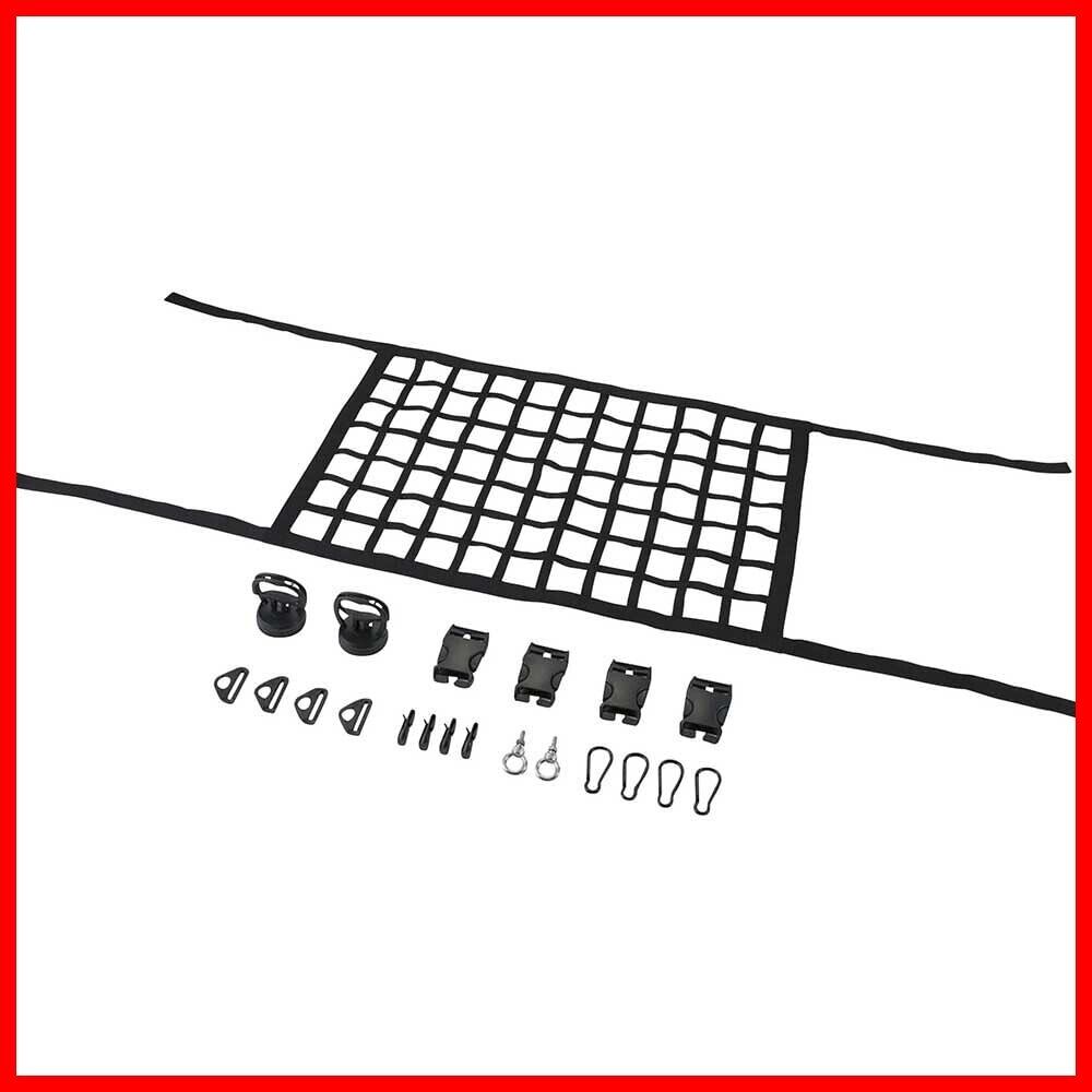 スタイル:ルーフネット EE-232 | パターン名(種類):単品 荷物の重さで垂れ下がらない伸縮性のないPPベルト仕様。狭い限られた荷室の天井空間を有効活用し収納力をアップするネット。垂れ下がりにくいので車中泊時でも圧迫感がなく快適。他の荷物との干渉も防止可能。荷物を積んで垂れ下がりにくいネットはバックミラー越しの後方視界を確保。色々な取付けを可能にする様々なアタッチメントが付属。
