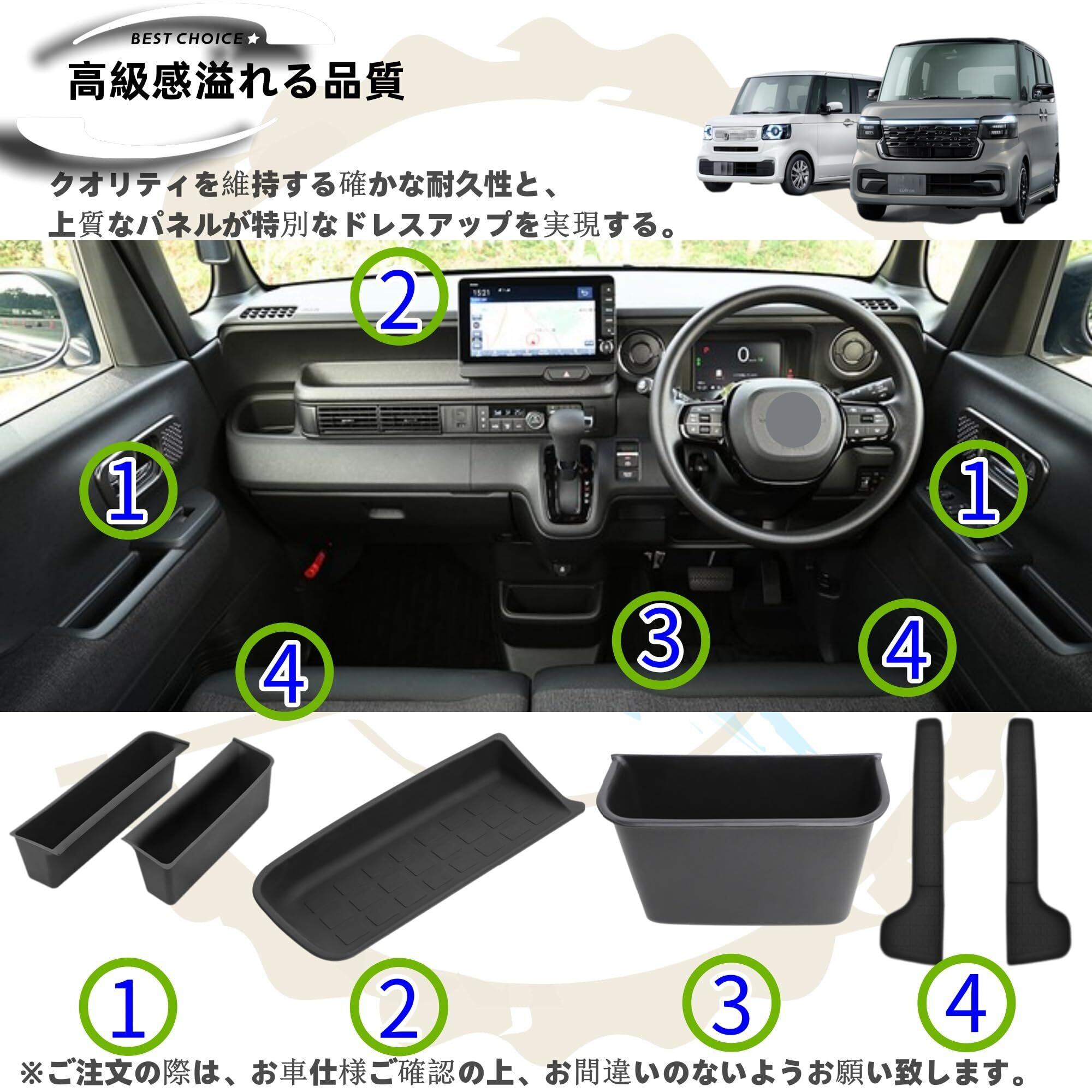 DodoxDIY 適用新型 N-BOX/N-BOXカスタム アクセサリー コンソール収納ボック+助手席オープントレイマット+ドア収納ボックスマット+ ドアサイド収納トレイ JF5 JF6型専用内装パーツ