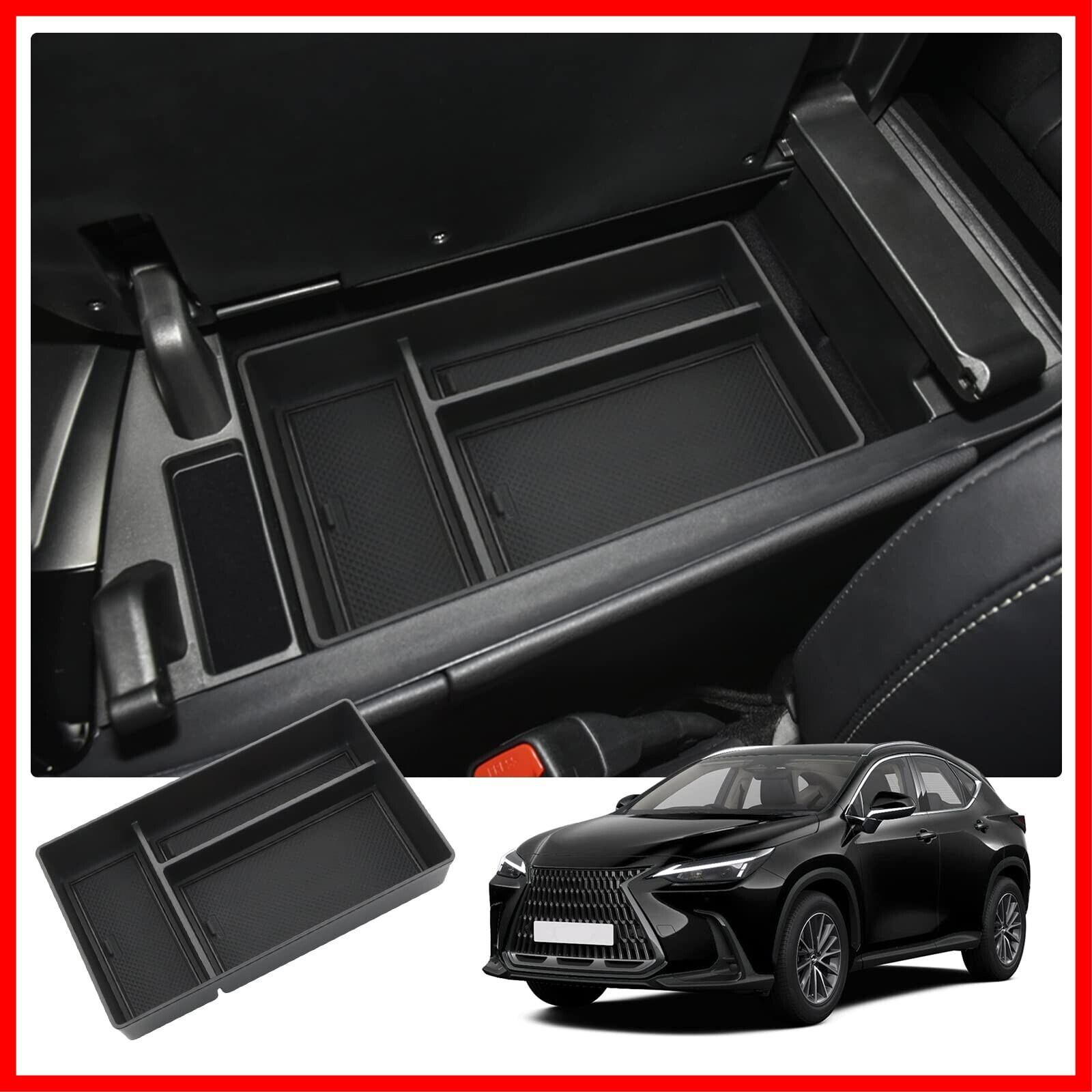 【RUIYA】新型 レクサス NX 専用コンソールトレイ NX250 NX350 NX350h NX450h+アームレスト収納トレイ コンソールボックス 小物入れトレイ カーアクセサリー 内装パーツ センターコンソールトレイ コンソールアームレストボックス ラバーマット付き (ブラック)