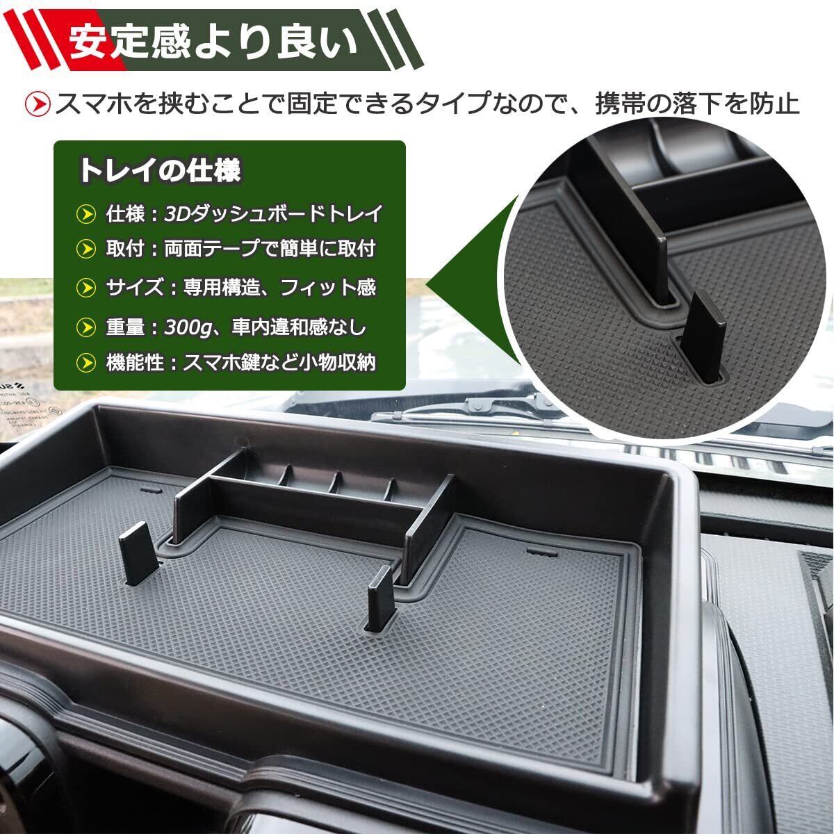 Temiry 新型ジムニー用 ダッシュボード トレイ スマホホルダー 滑り止め ジムニー用 jb64 アクセサリー 小物入れ ジムニーシエラ専用 アクセサリー 車内収納ボックス 3Dトレイ 携帯落下防止 車種専用設計 内装 パーツ