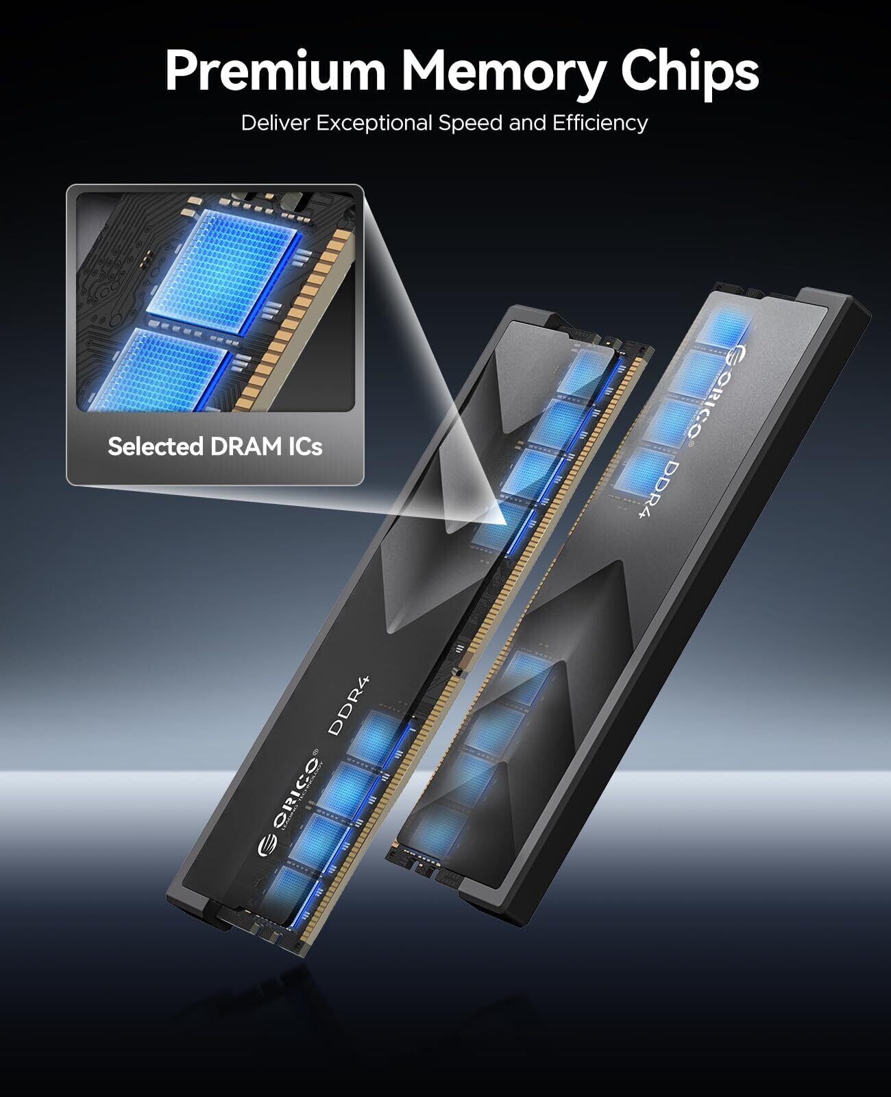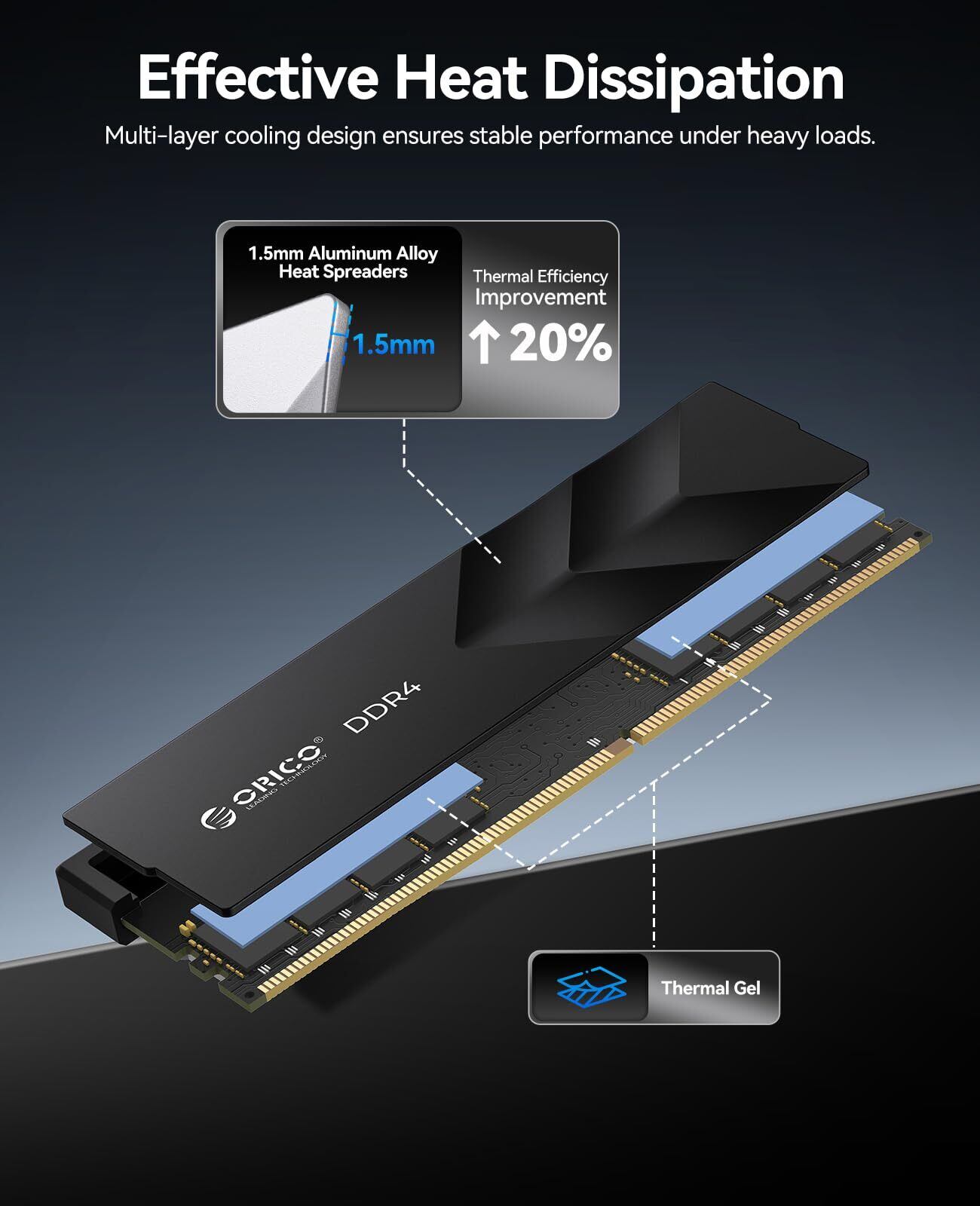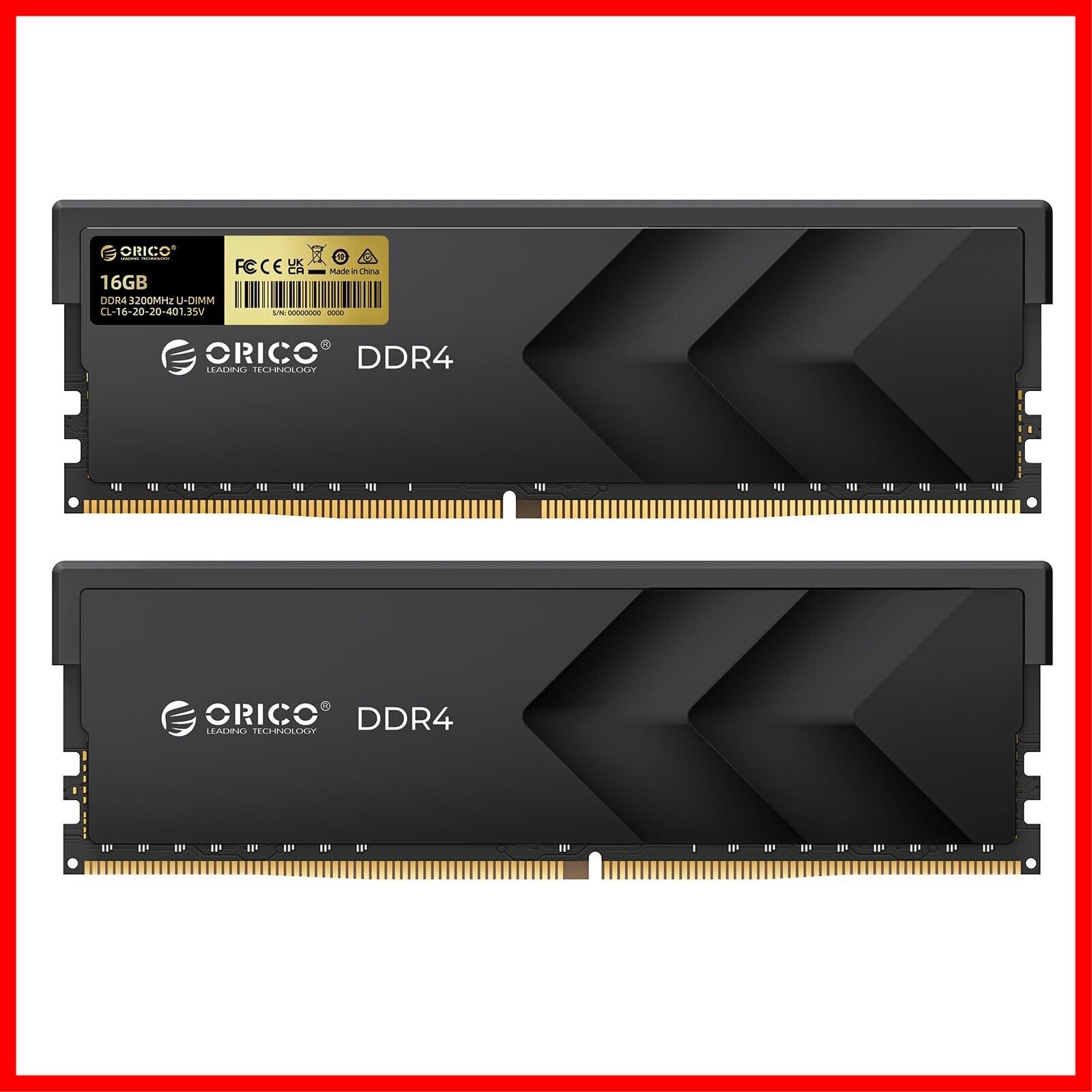 ORICO Raceline Racer DDR4メモリ 32GB (16GB×2枚組) 3200MHz CL16、XMP 2.0対応オーバークロック、1.35V UDIMM、Intel & AMD互換、高性能ゲーミング用デスクトップメモリ - H400 ブラック