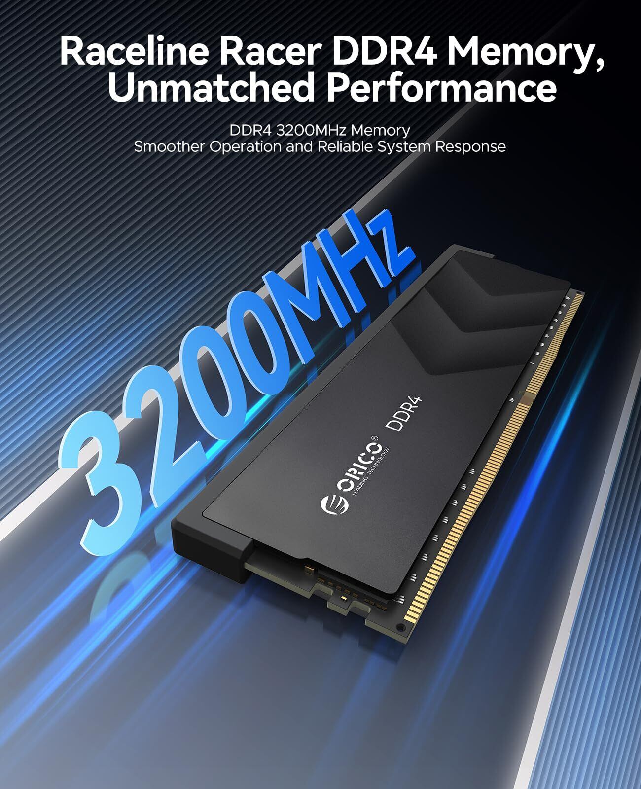 高性能を実現 - ORICO Raceline Racer DDR4メモリはオリジナルダイを採用し、CL16の超低レイテンシと3200MHzの高周波動作により、データの読み書き速度を大幅に向上。遅延を減少させ、ゲームやマルチタスク時のパフォーマンスを飛躍的に高めます。
