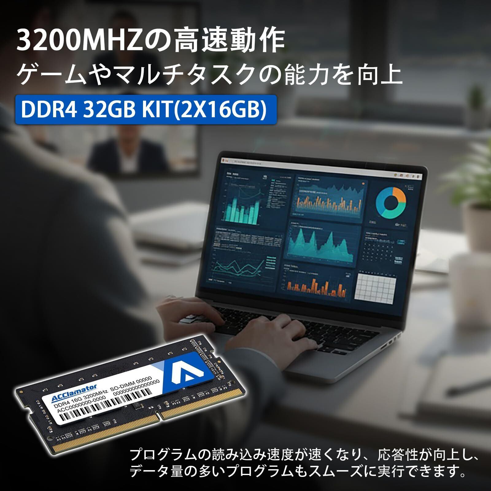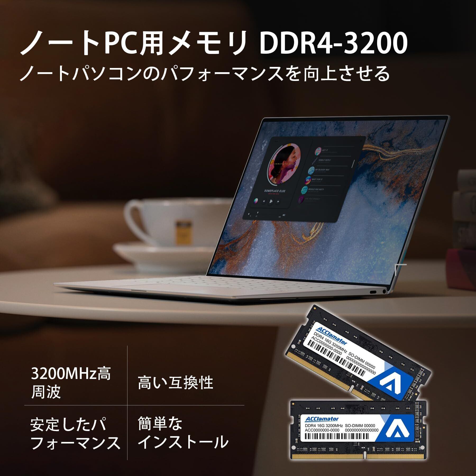32G 3200MHz DDR4 ノートPC用メモリ SO-DIMM (16G×2枚) JEDEC準拠 ラップトップ用メモリ PC4-25600 CL22 1.2V 260ピン Acclamator (NB16G-3200*2)