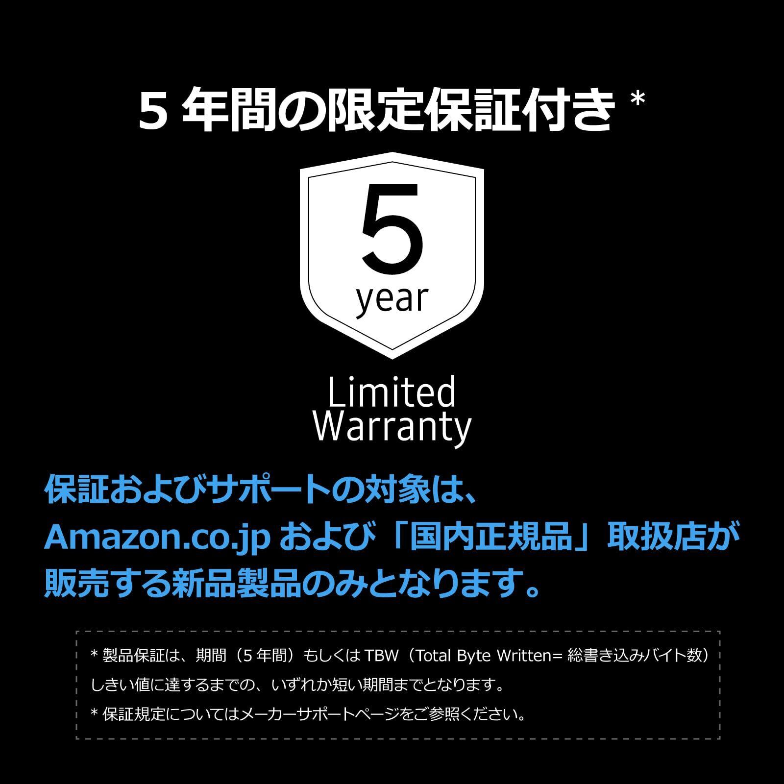 : 5年間/TBW 300TB ※いずれか短い期間まで