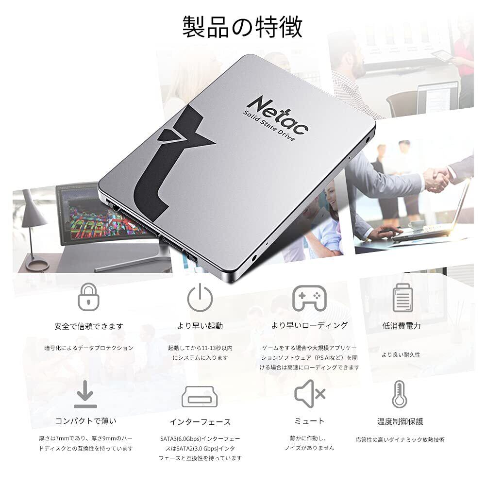 Netac SSD 256GB 内蔵 2.5インチ SATA3 6Gb/s 7㎜ 3D NAND FLASH PS4動作確認品 耐衝撃/耐振动/超高速/金属の質感 (シルバー)