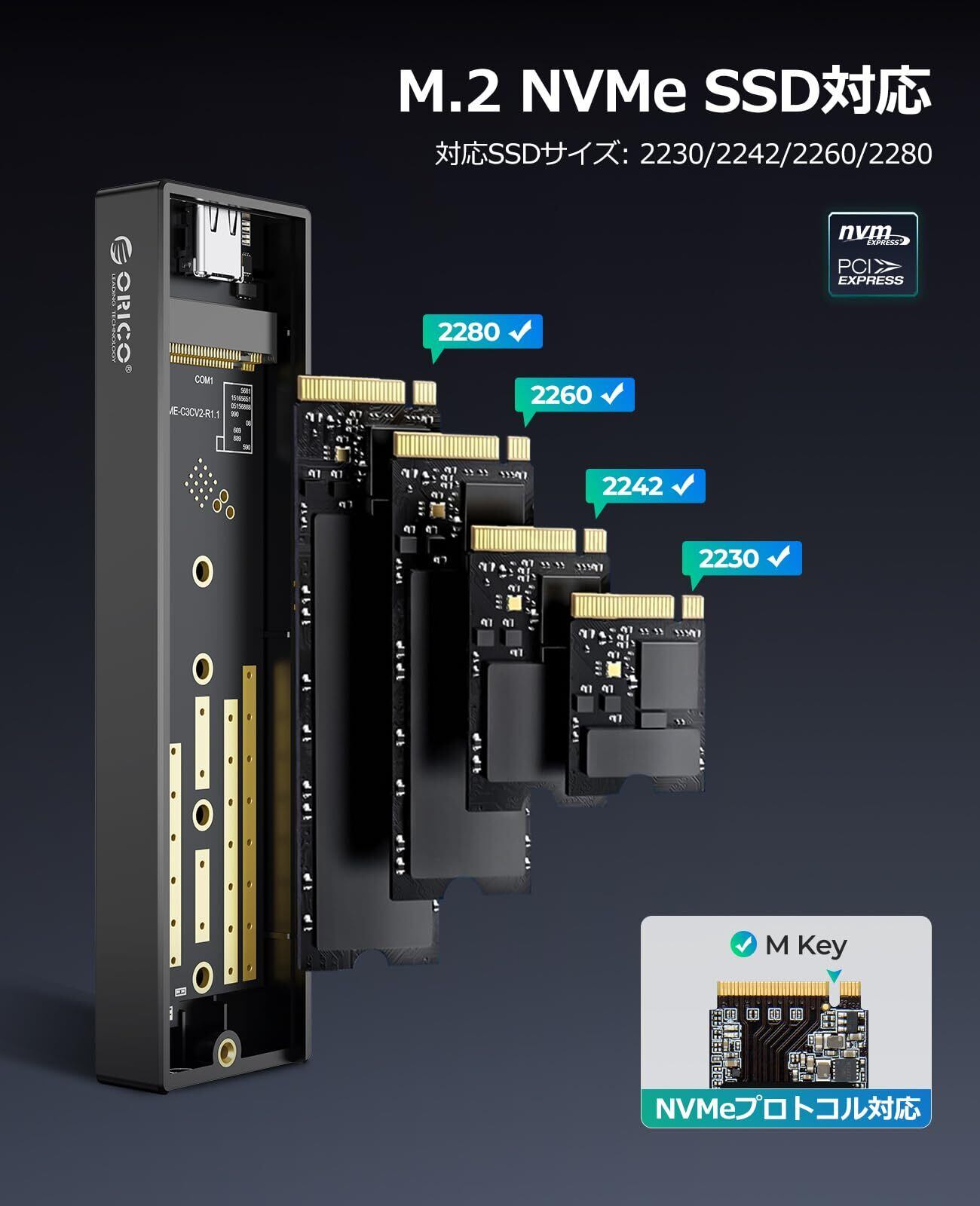 【人気商品】ORICO M.2 NVMe SSD 外付けケース USB 3.2 Gen2 10Gbps高速データ転送 NVMe/PCIE 対応2230/2242/2260/2280 SSD ケース M2 SSD 外付けケース 8TB容量に対応 UASPサポート ABS+アルミ材質 黑 M2PV-BK | Cherry Blossoms