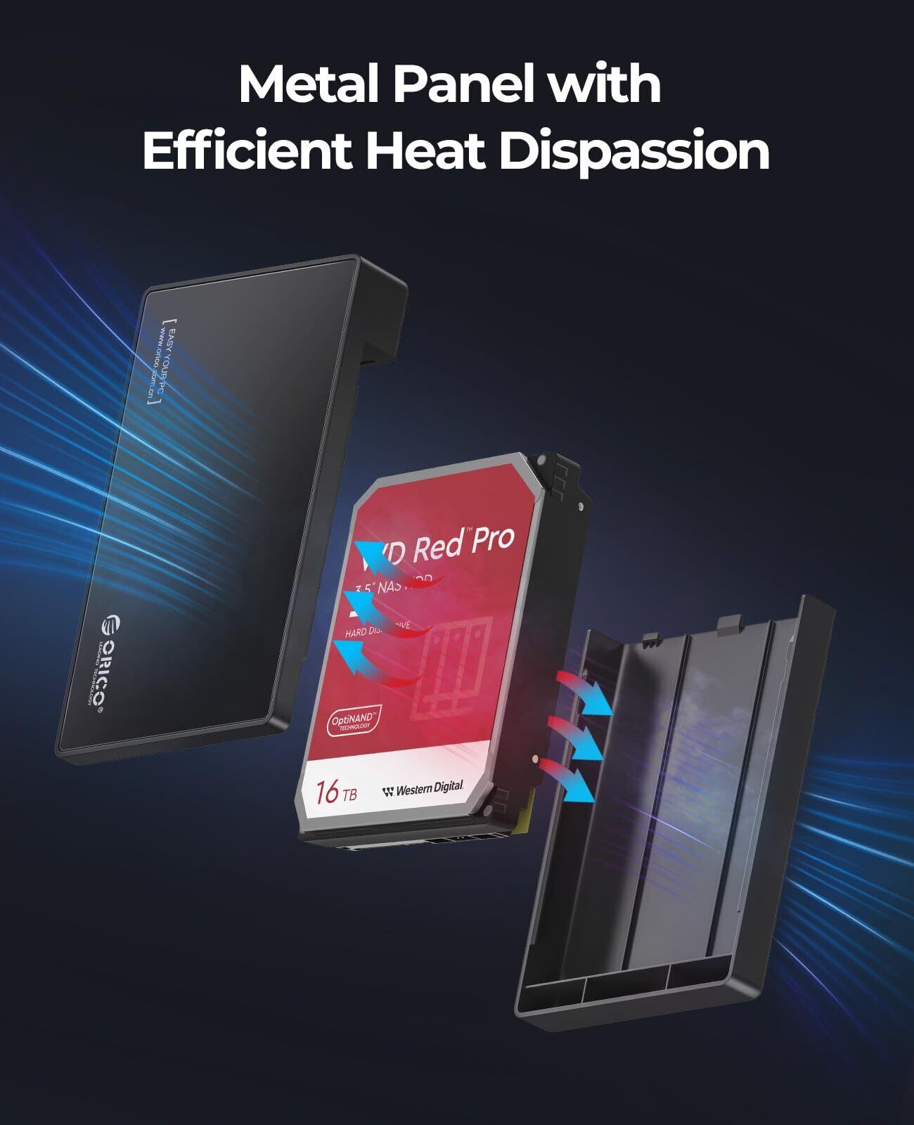 【安全保護】金属製パネルにより、優れた放熱性と耐圧性を持っています。外付けhdd ケースの内部に絶縁膜付、静電気による損傷を軽減し、データを保護させます。