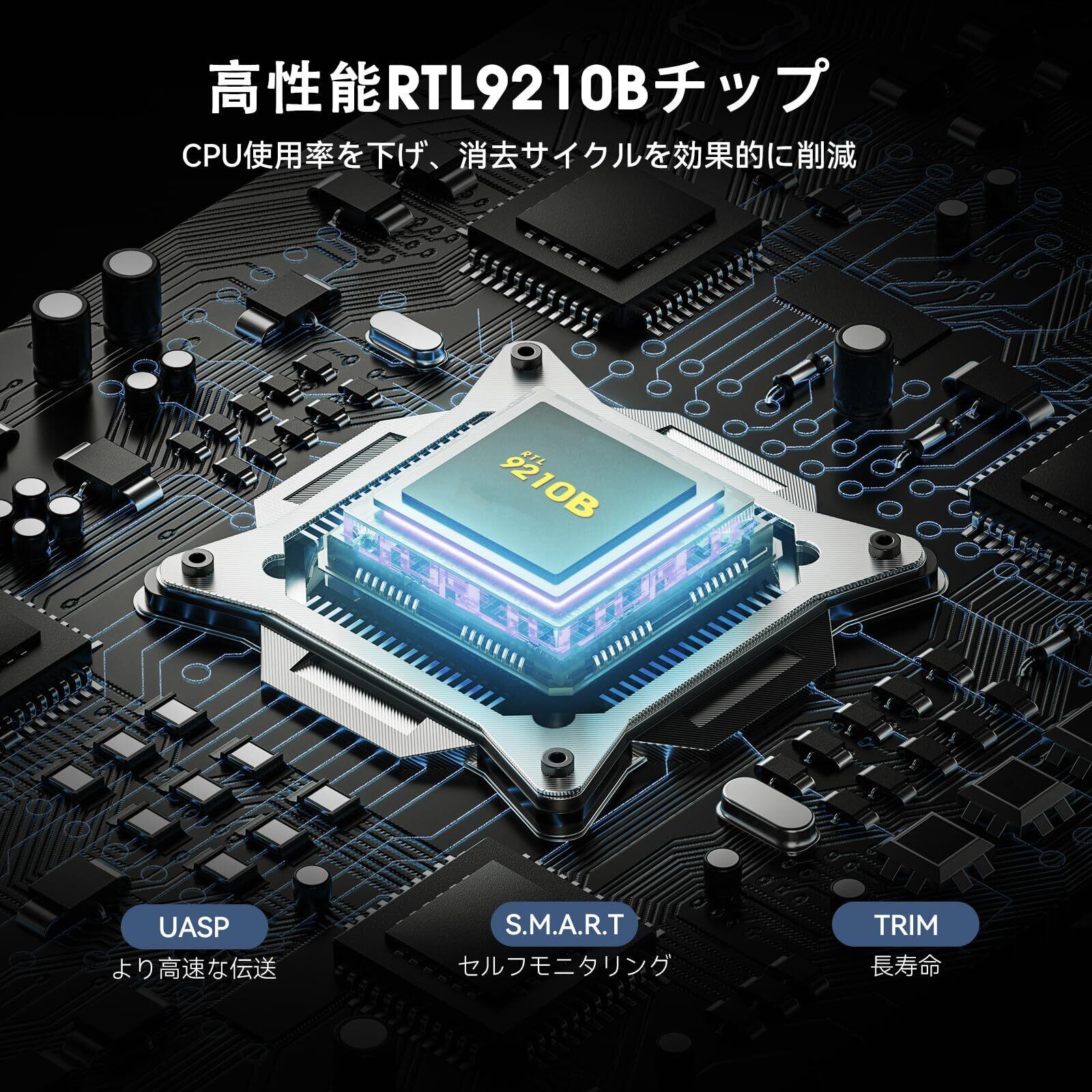 【高速&安定】M.2 SSD ケース外部の出力ポートはUSB3.1 GEN2 USB Type-Cです。NVMeプロトコル理論上の転送速度は900+MB/S、NGFFプロトコル理論上の転送速度は440+MB/S、大幅に読み書き効率を向上させ、大きなファイルの転送を加速させる;RTL9210Bメインチップを採用して、UASPおよびTRIM機能を備えており、CPU負荷を低減し、消耗を低減し、速度が速く、耐久性が高い。