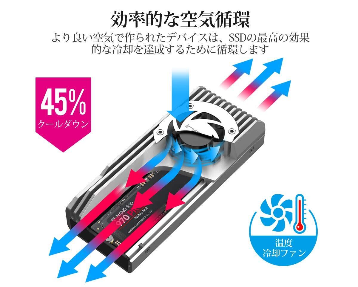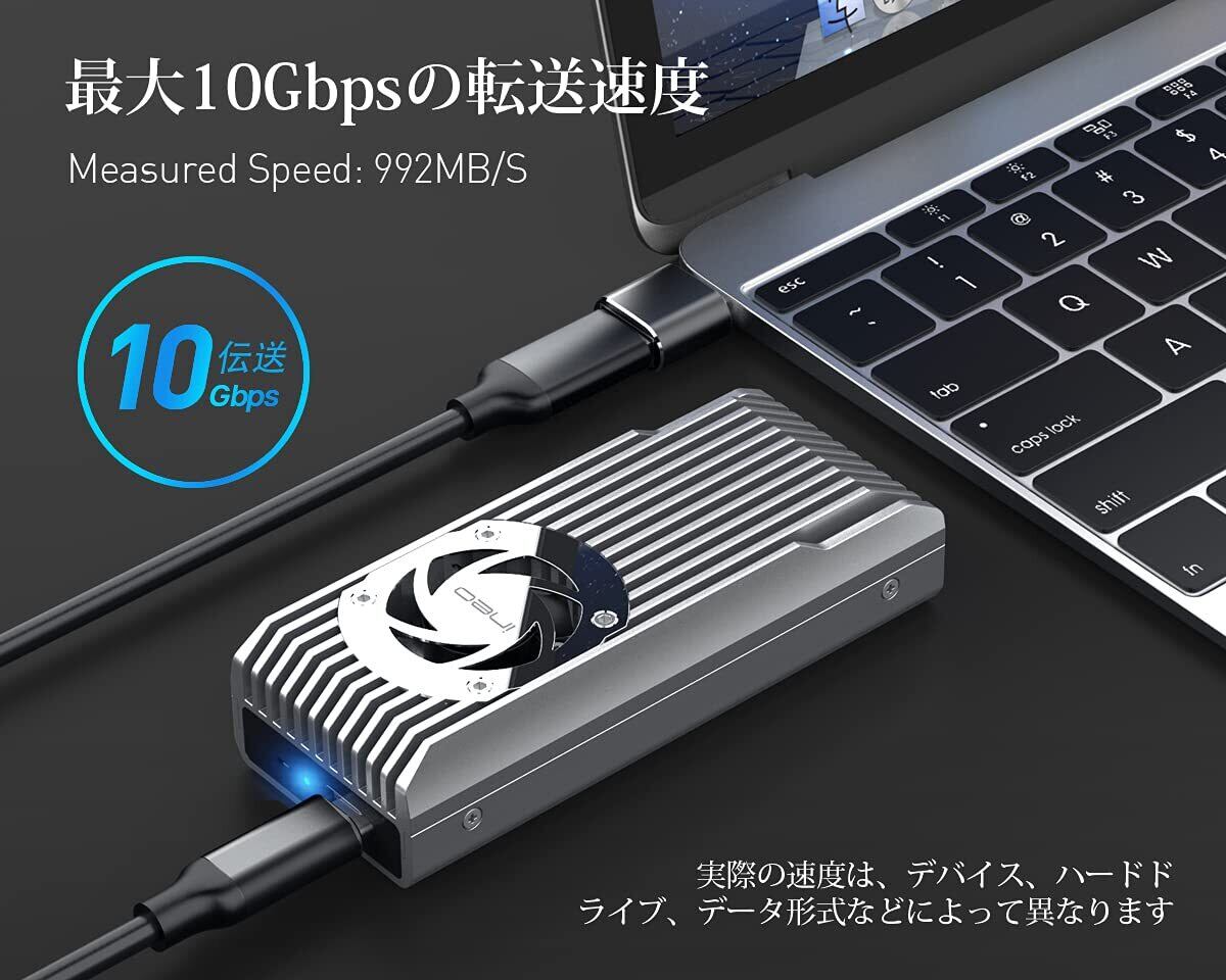 超高速10Gbps USB 3.1 Gen2転送速度、Mキー仕様およびサイズ2280、2260、2242、2230のM.2 NVMe SSDと広く互換性あり、シリコンサーマルパッドが貼りっておって、高速転送時の冷却を改善します。 M.2 NVMe / PCie SSD Mキーのみ、NGFF / SATA SSDをサポートしていません。