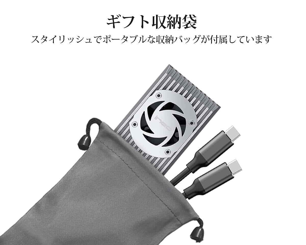ineo M.2 PCIe NVMe SSD外付ハードドライブケース 効率的な放熱循環を助けるアルミニウム合金フィンと本体の底に滑り止めマットのデザイン 内蔵サイレントファンと 書き込み保護の機能とサーマルシリコンパッドに付く[C2598-NVMe]