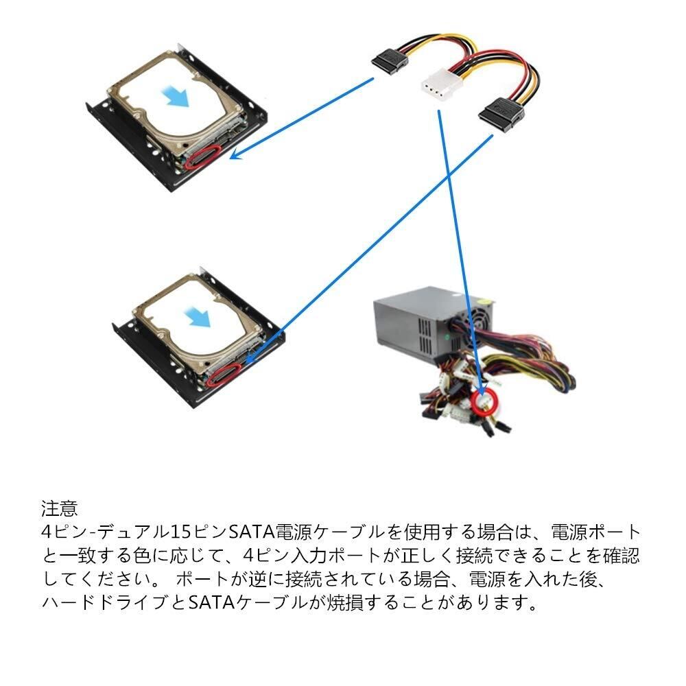 【2022最新】YFFSFDC 2x2.5インチHDD・SSD取り付け可能の変換フレーム、3.5″〜2.5″内蔵HDD増設用フレーム、SSD変換ブラケットアダプター インストールツール+ 2xSATAデータケーブルと2x電源ケーブルが含まれます(4ピンDタイプの電源コードの入力ポートを逆に接続すると、ハードディスクとSATAケーブルが焼損する可能性がありますので) | Cherry Blossoms