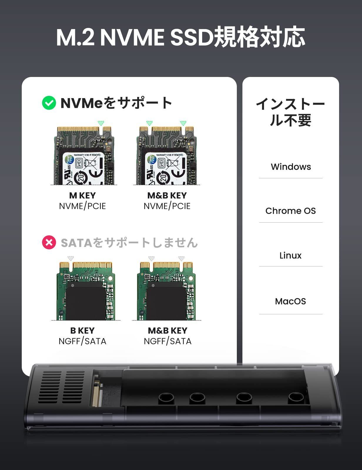 UGREEN M.2 SSD 外付けケース NVME専用 M.2 SSD ケース 【USB3.2 Gen2接続規格】 UASP対応 10Gbps高速転送 アルミ