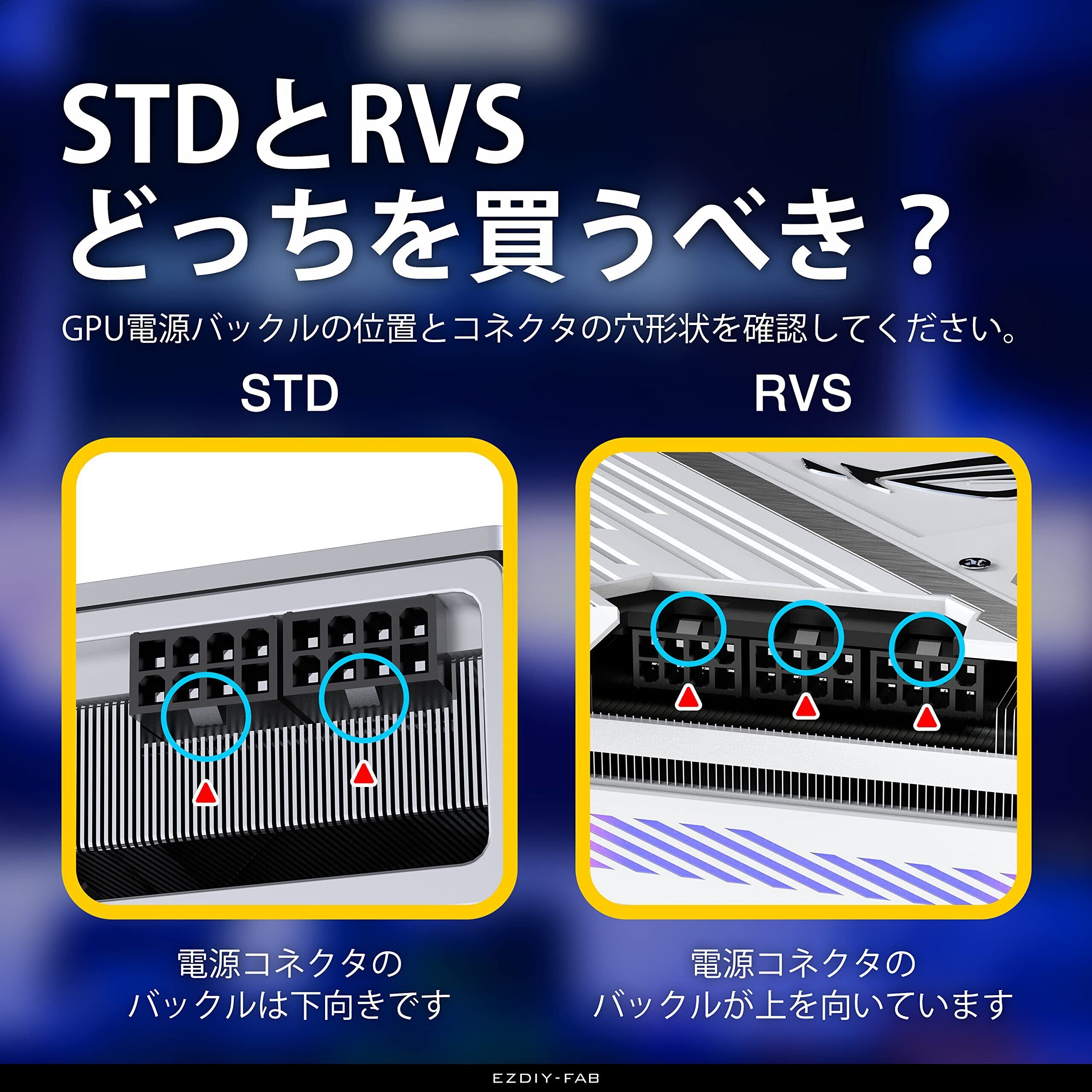 PCIE 8PIN ケーブルの取り付け方向を変更するために設計されています。 ご購入前にGPUコネクタの向き(STD[標準タイプ]またはRVS[リバースタイプ])にご注意ください。