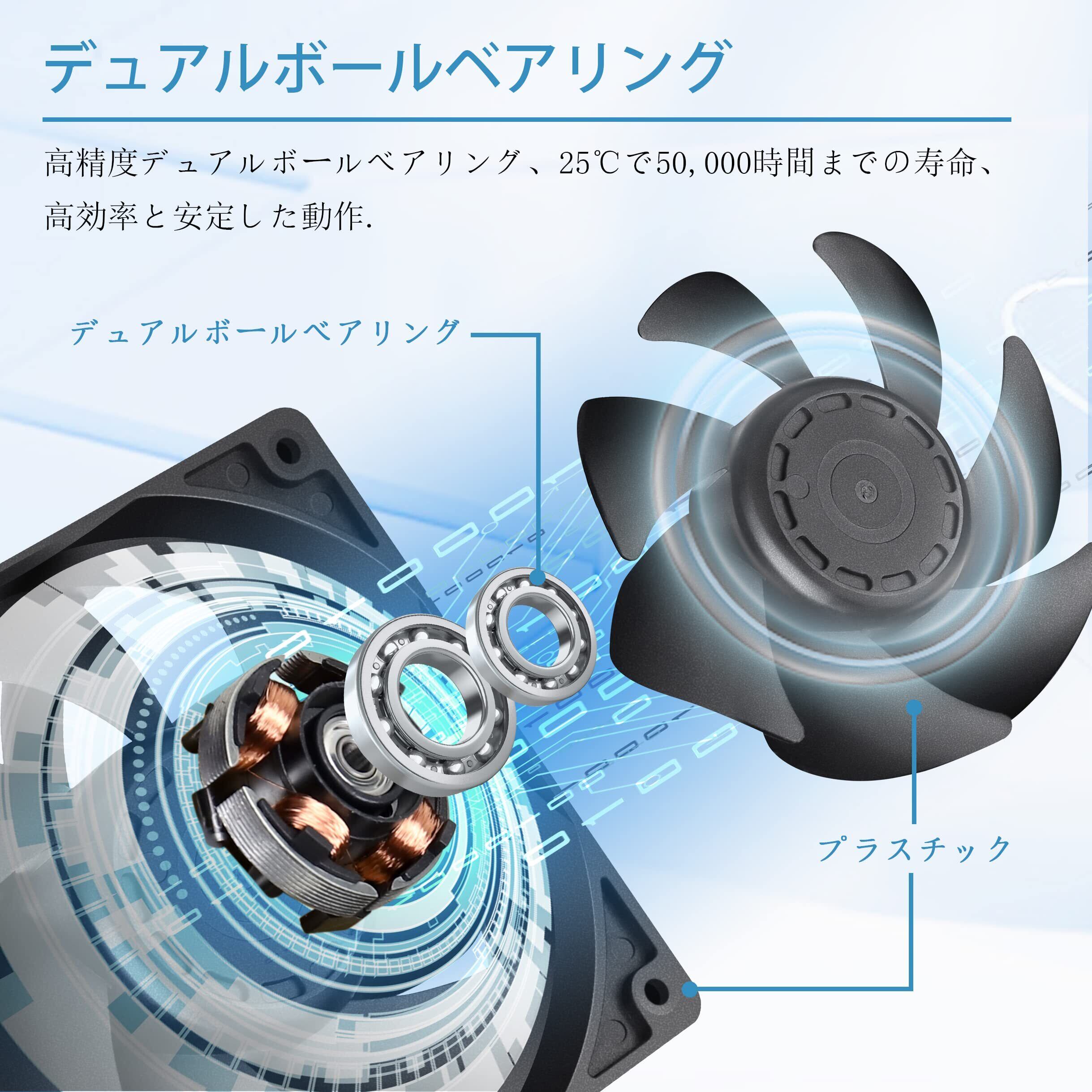 ❀ ベアリング:ダブルボールベアリングの寿命は50,000時間、ファンを安定して使用できます
