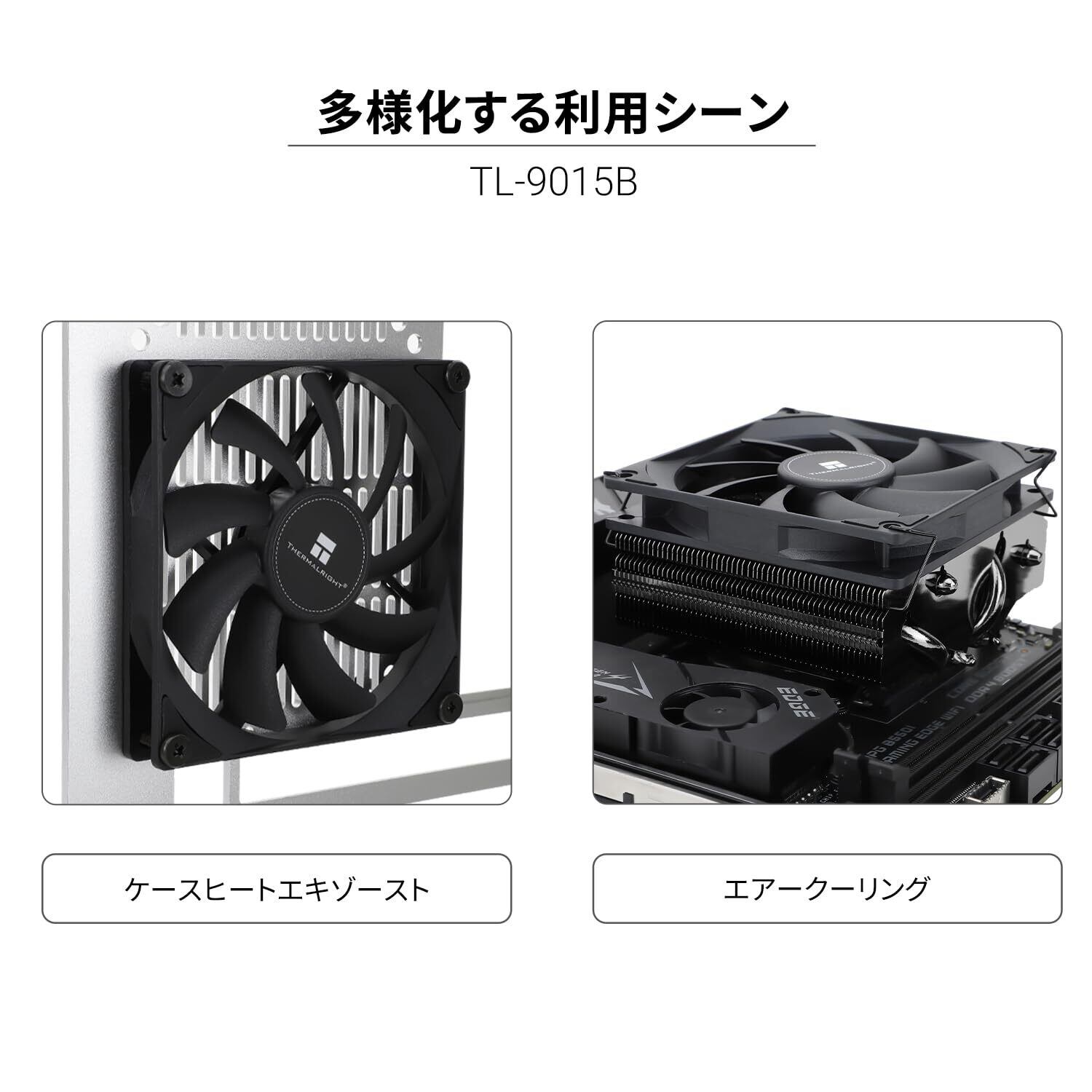 Thermalright TL-9015B CPUブラックファン92 MMケースPWM冷却, 4 PIN PWM PC冷却、15 mmスリム、回転数2700 RPM、CPU冷却ファン、ノイズ22.4 dBA(TL-9015B)