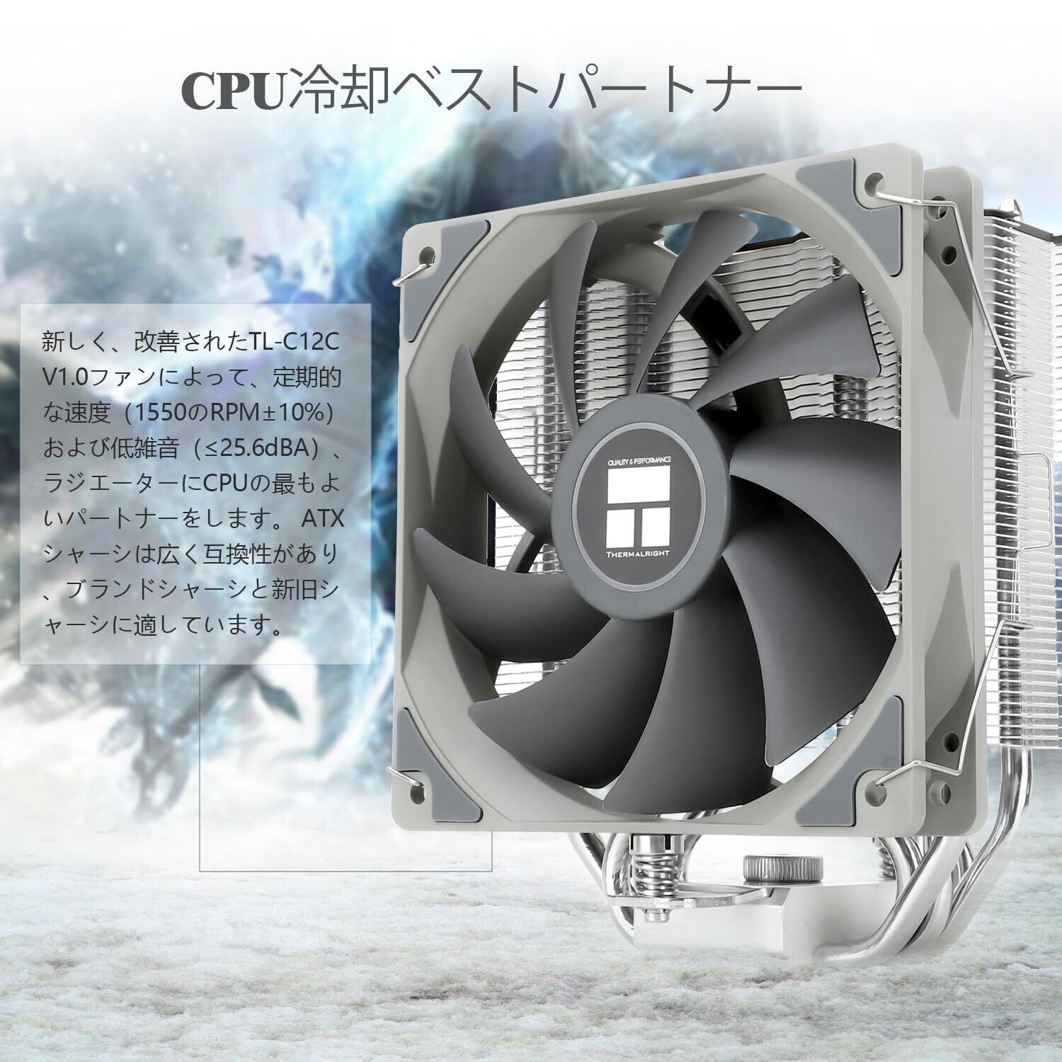 【AGHP III技術】5×6 mmヒートパイプはAGHP III技術を採用し,垂直/水平方向による逆重力効果を解決し。S-FDBベアリングは、20,000時間にわたる工業寿命を確保し、空冷ヒートシンクの長寿命を確保します。UL A級安全絶縁低級、工業強度PBT+PC材料、あなたのために良質な製品を作ります。高さ148 mm、中型パソコンケースに適合。