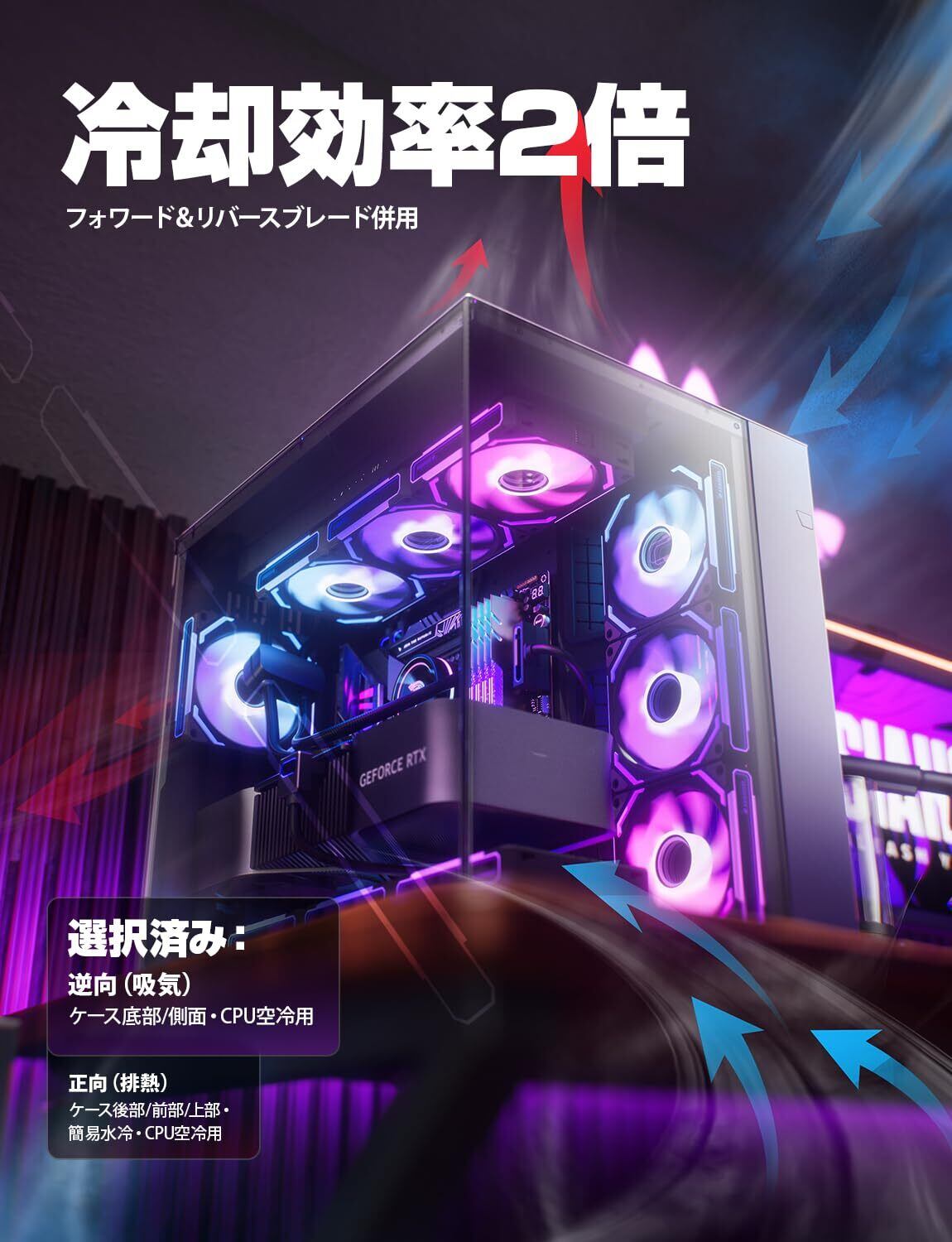 [ARGB神光同期]: 光と影の究極の調和—並列配置ARGB LEDにより、従来ファンの雑多な光効を解消。同梱の小型SATAコントローラーでマザーボードARGB未搭載機種も簡単制御。虹波/星閃きなど12種類の光モードを内蔵。ASUS Aura Sync/GIGABYTE RGB Fusion/MSI Mystic Lightに完全対応し、誰でも簡単に統一された光効体験を実現。旧型PCでも美しい光のアップグレードが可能に。