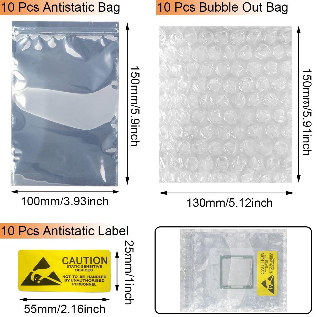 付属品: 静電気防止袋(4inx6in/10x15cm)、空気と湿気を遮断し、貴重なCPUの酸化を防ぎ、ヒートシールをサポートします。 静電気防止ラベルを使用すると、よりプロフェッショナルな作業が可能になります。 バブルアウト バッグ (5.12 インチ x 5.9 インチ / 13 x 15 cm) は、信頼性の高いクッション保護を提供し、CPU の配送による損傷コストを削減します。