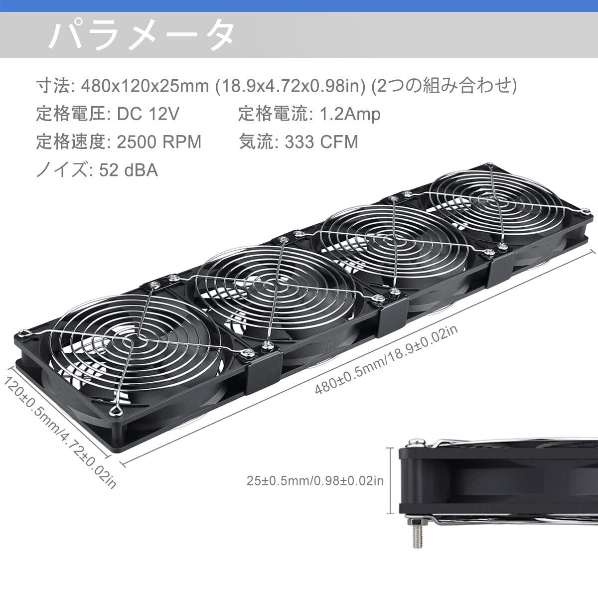GDSTIME 4 x 120mm x 25mm 換気扇、DC12V電源 4連ファン、キャビネットシャーシ冷却ファン、サーバーワークステーション 冷却