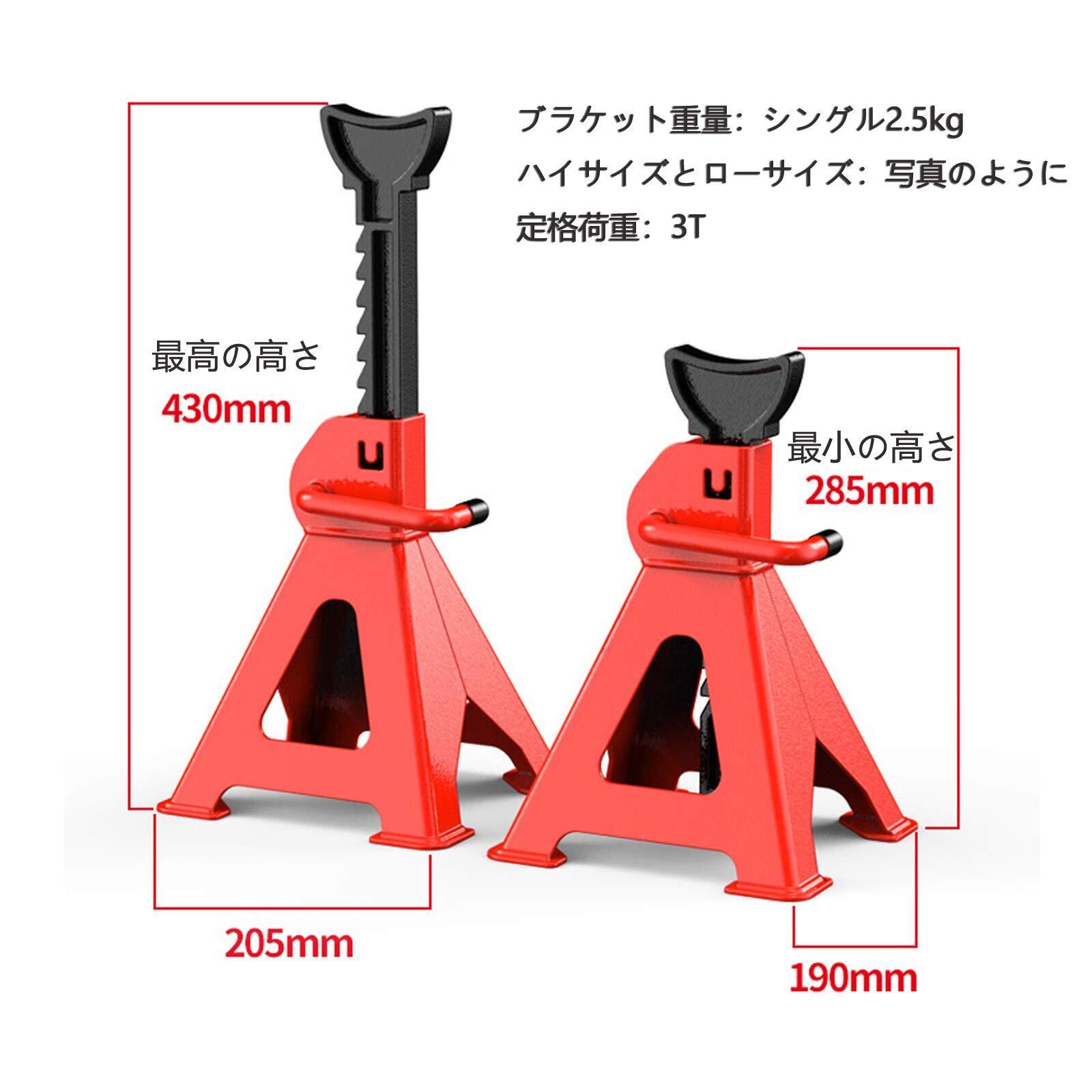 【高さ調節可能】高さ設定は使用者によって約285~430mm範囲で自由に調節ことができます。(ジャッキスタンドの高さは個体差があり、実物によって少し違いますが、使用には影響がないのでご安心ください。)レバーが上に上がると、ラチェットの高さを調整できます。下に下がると、ロックされます。