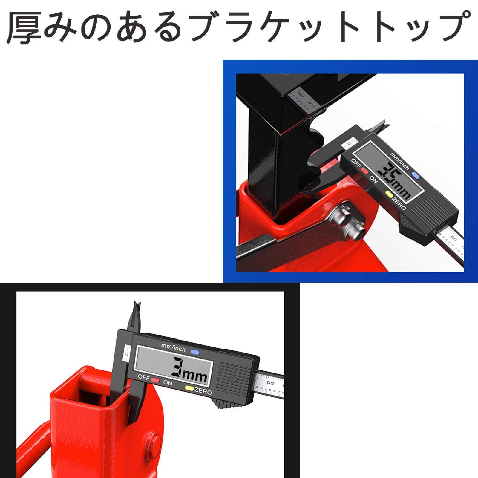 【安全&耐用】1.折り曲げる穴のところを叩き込んて、ラチェット・レバーを落ちないように固定して、安全性も高めます。2.厚い荷重を受ける4脚マット付き、安定、安全、長持ちできます。スポンジ状の表土にも使えます。3.丈夫なスチール製、防錆コーティングを採用し、ジャッキの寿命を延長することができます。