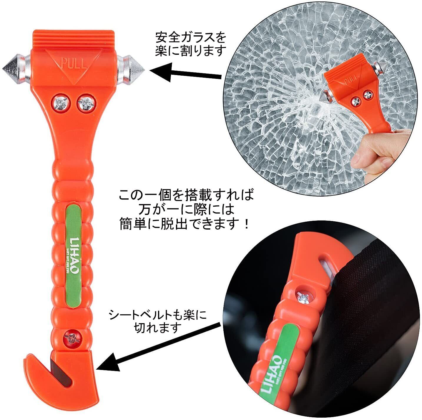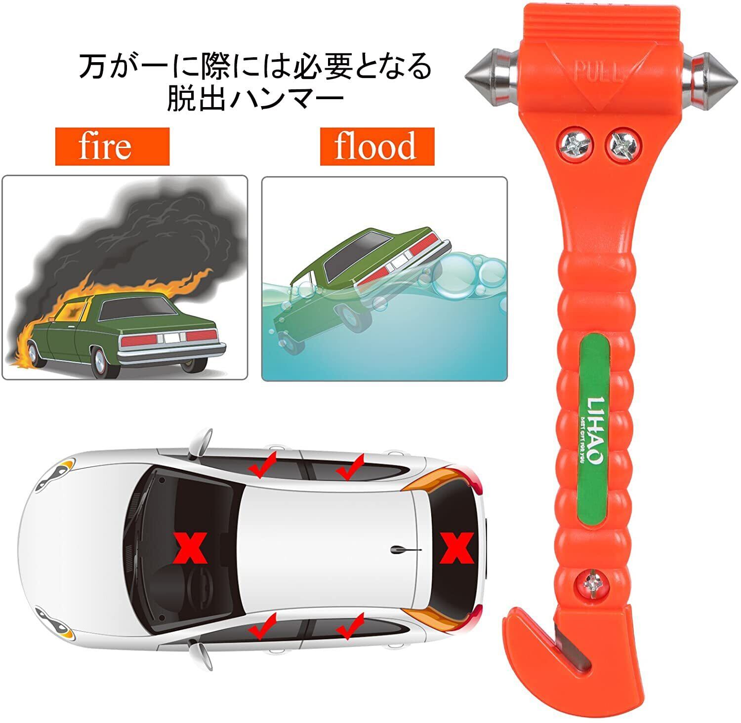 LIHAO レスキューハンマー 脱出用ハンマー 車 ハンマー 2個セット 固定ホルダー付き 緊急脱出ハンマー 車 窓割り ハンマー シートベルトカッター付き 安全 緊急 ガラス 窓 割り 車載用