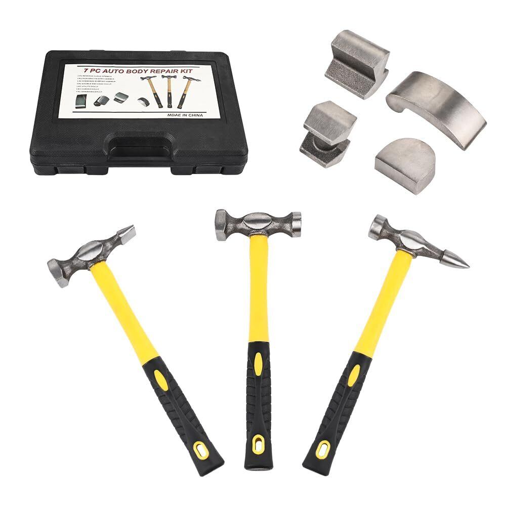 板金ハンマーセット ハンマーとドーリーセット 金属加工 凹みリペア 車整備 工具 7pcs 専用ケース付き
