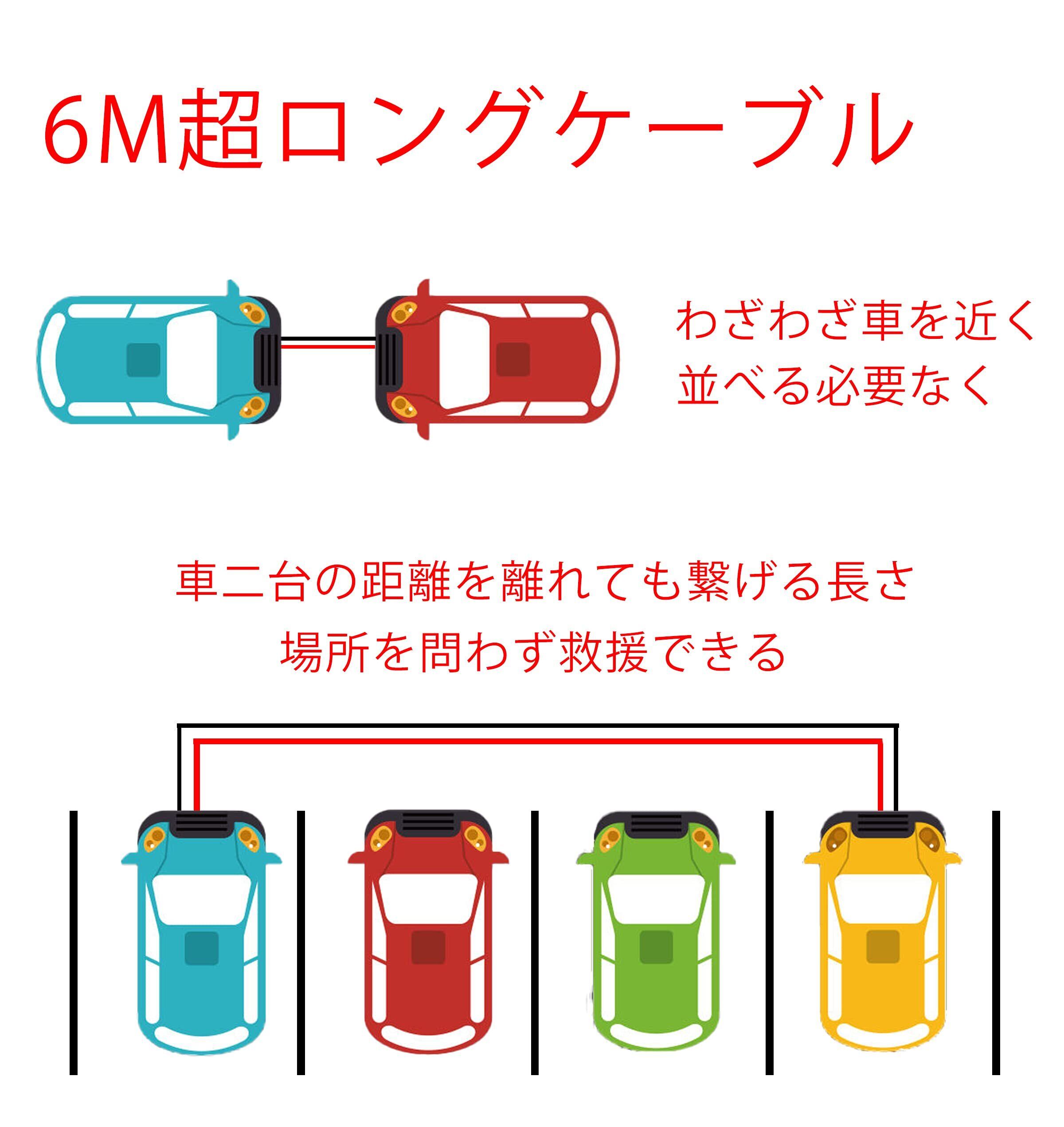 [ロングサイズ]普通のブースターケーブルが故障車と救援車を近く並べなければなりませんが、6メートルのブースターケーブルはスペースに制限がなく、故障車と救援車が離れても簡単に救助できる。いろいろな場面も役に立ちます。