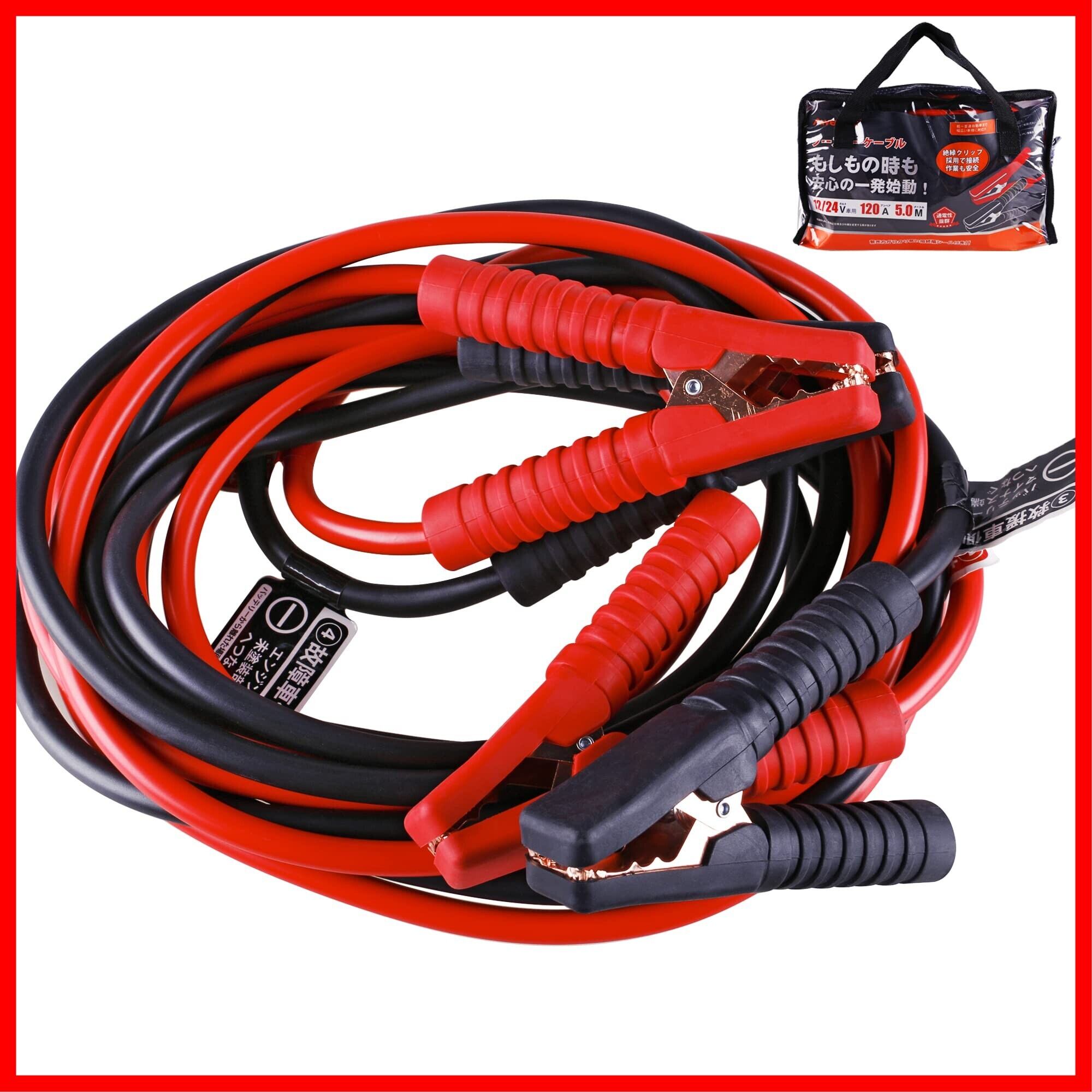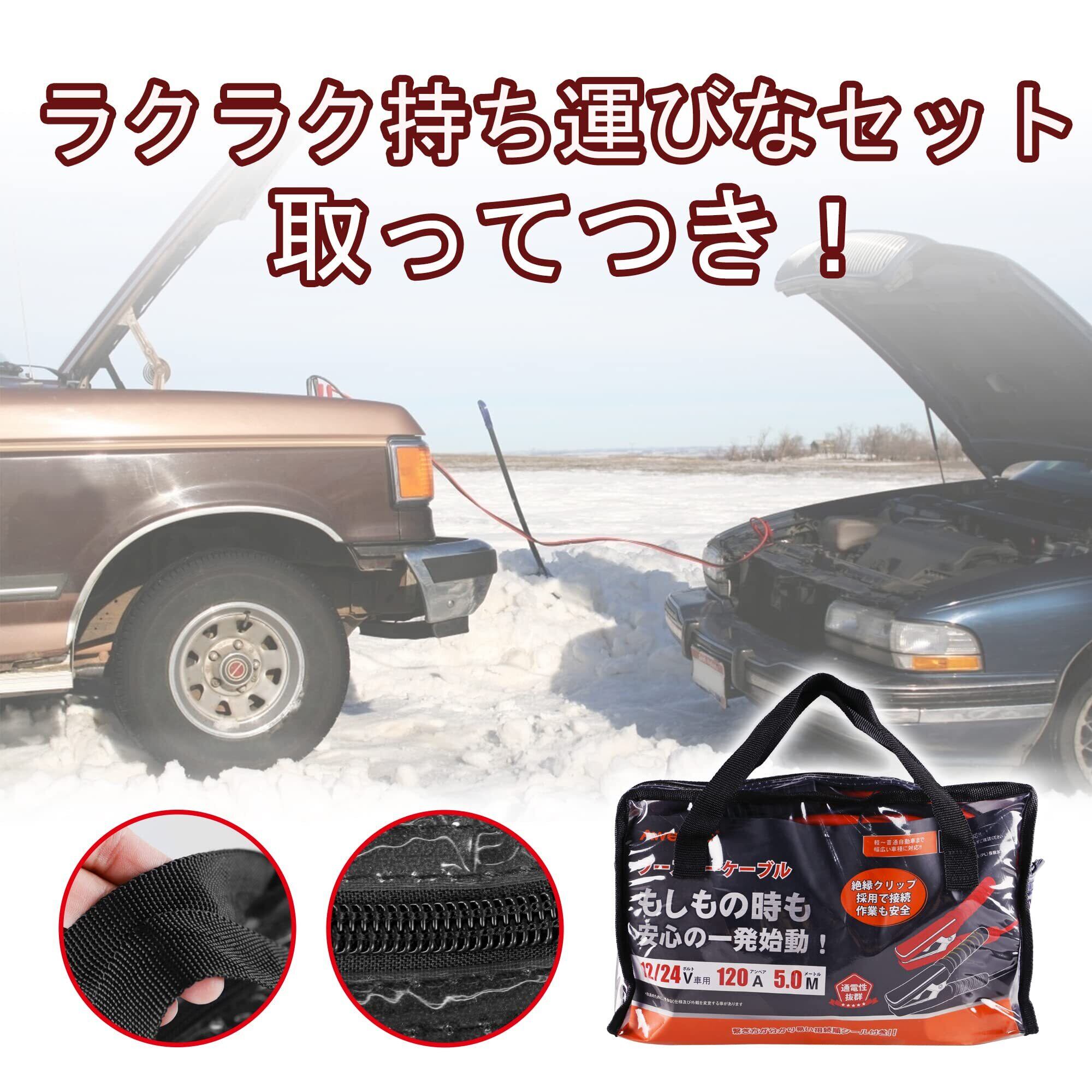 AWELTEC ブースタケーブル 120A 5M 12V/24V車対応 軽自動車から小型トランク・大型乗用車・HV車対応 車起動 エンジン始動 高安全性 高耐久性 耐熱防寒 故障車 救援 バッテリー充電 収納バッグ付き 日本語説明付き PL保険付き