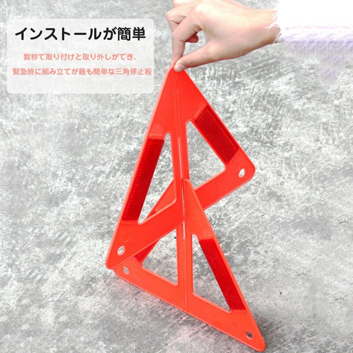 【使用便利】:数秒で取り付けと取り外しができ、緊急時に組み立てが最も簡単な三角停止板です。高反射高輝度、夜間の使用時により便利に使用できます。コンパクトで収納可能で、普段は車に置いたりバイクにかけたりしても場所をあまり取りません。