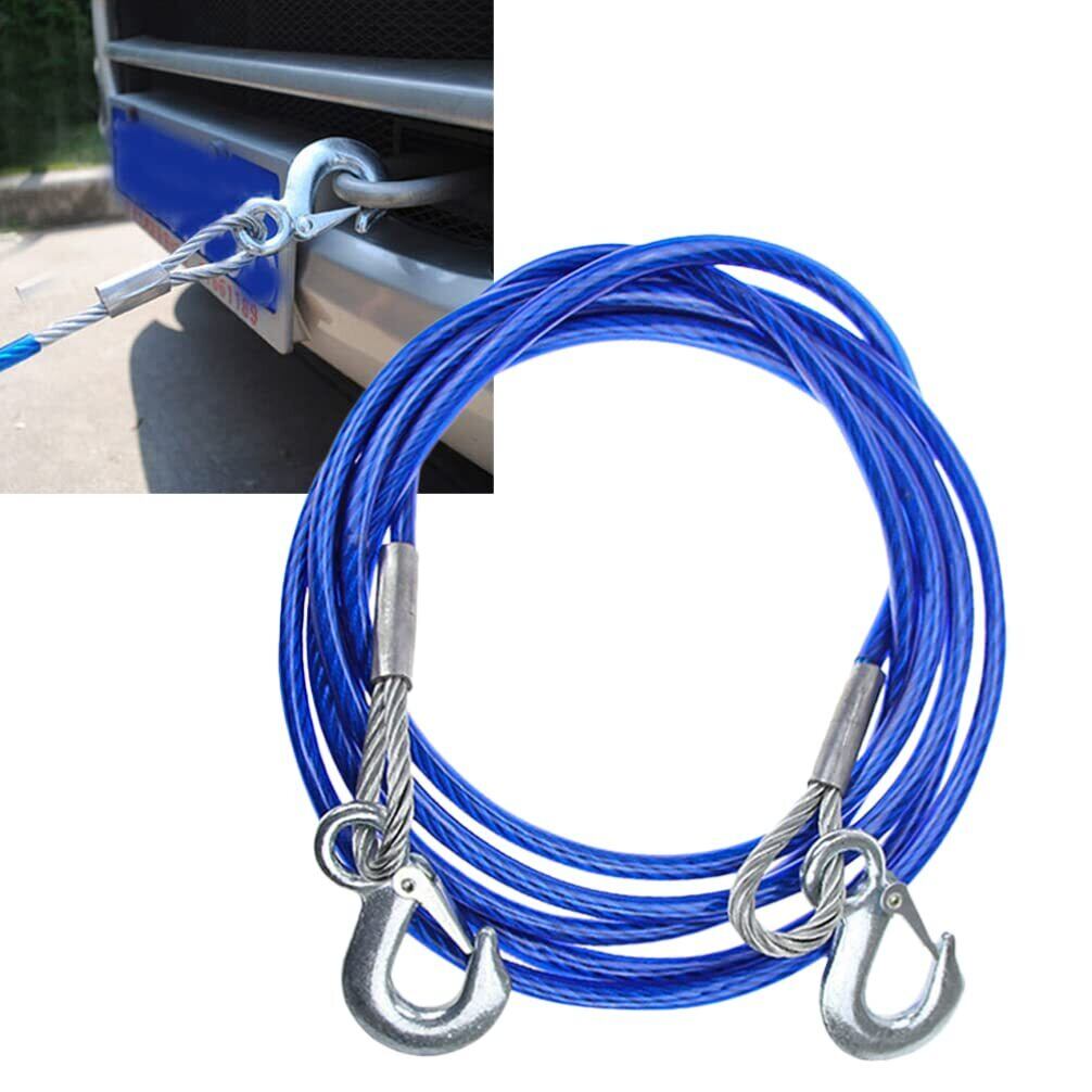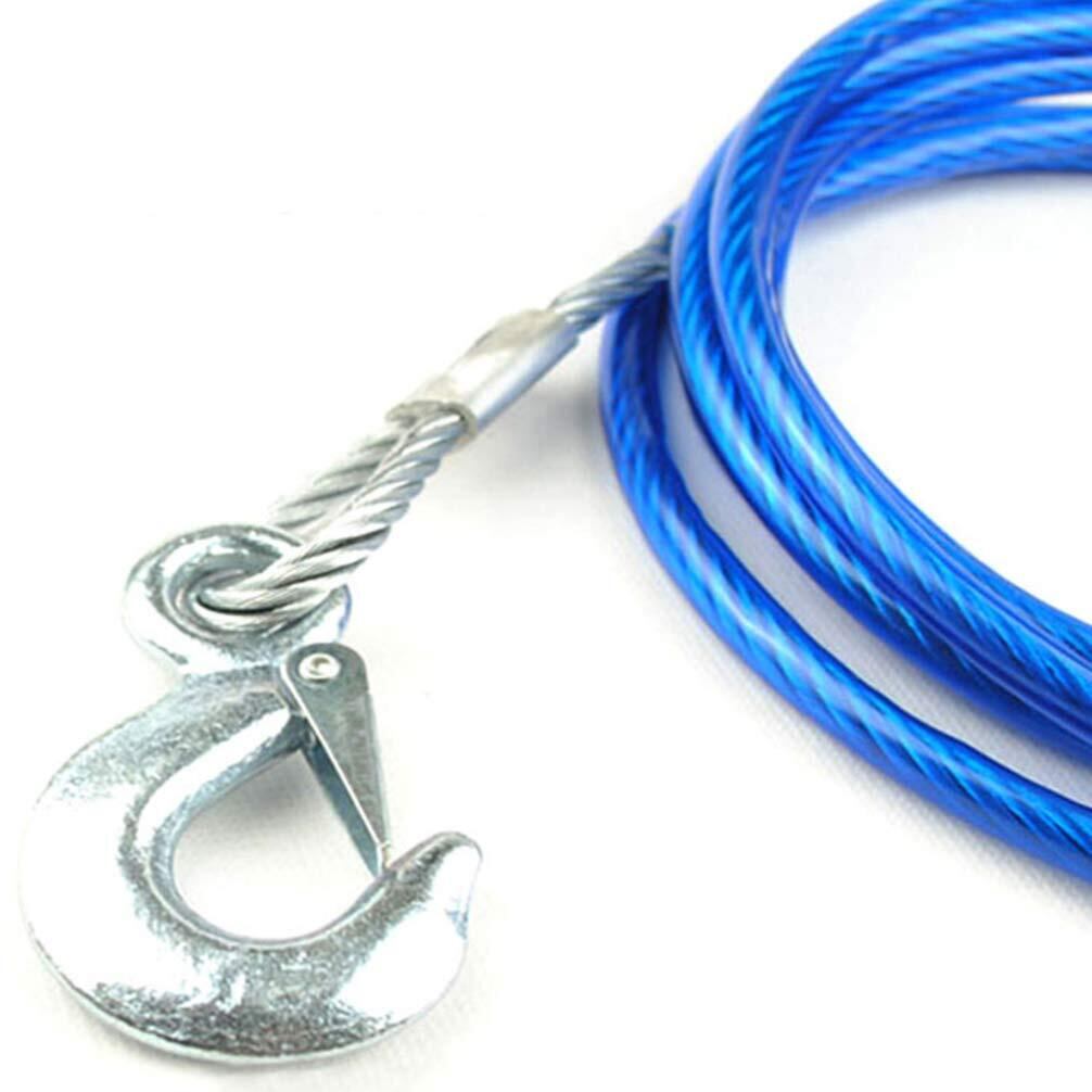 POPETPOP 牽引ロープ車 緊急ロープ 5m 破断強度7t スチールワイヤー製ロープ 高強度牽引フック ブルー