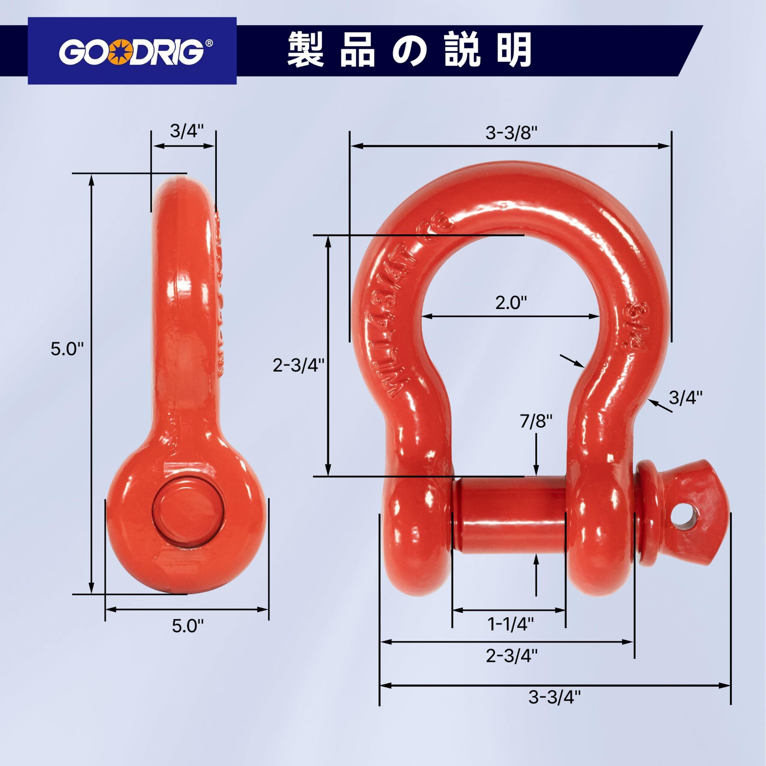 GOODRIG Dリング シャックル 3/4" 二個セット 牽引器 オフロードカー SUV ATV トレーラー キャンピングカー 取り付ける簡単 高強度 スポーツユーティリティ破断強度約28.5t