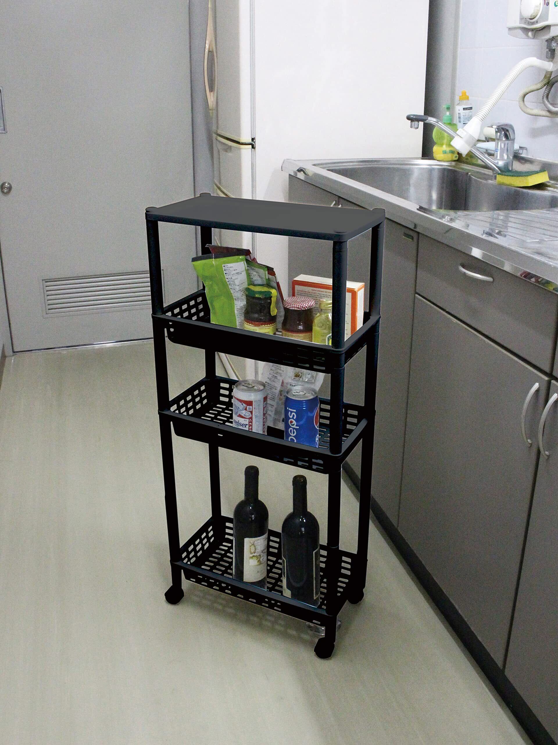 ●散らかる小物やストック類などをすっきりと整頓できる、樹脂製の4段ワゴンです。●幅約20.5cmのスリム設計となっており、隙間を有効活用できます。●シンプルで小回りのきくスリムワゴンなので、キッチンや洗面所などの狭い空間でも使いやすいです。●キャスター付きなのでスムーズに移動ができ、お掃除の際もサッと動かせます。●下段には背の高い調味料やボトル類を収納できます。●バスケットはメッシュ状となっており、通気性抜群です。●安心の日本製です。