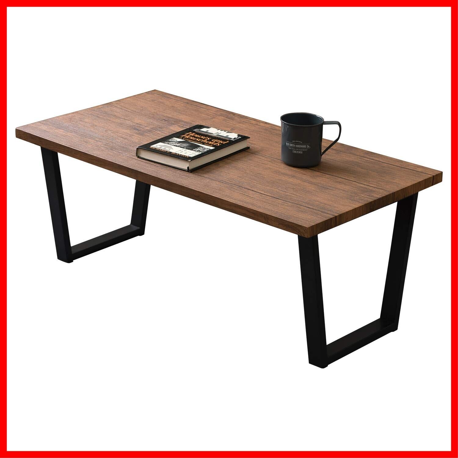 萩原(Hagihara) ローテーブル センターテーブル テーブル 机 【木目調天板×スチール脚】 インダストリアル リビング ソファテーブル 幅90 ブラウン LT-4395BR