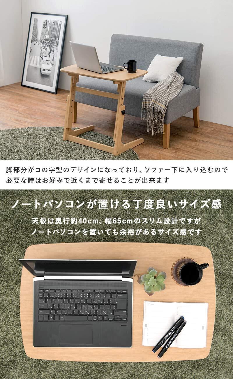 高さ調節が4段階に設定可能な昇降テーブル。在宅勤務のテレワークとして使えるサイドテーブルはソファやベッドサイドでも使いやすい設計! PCテーブルとしても◎