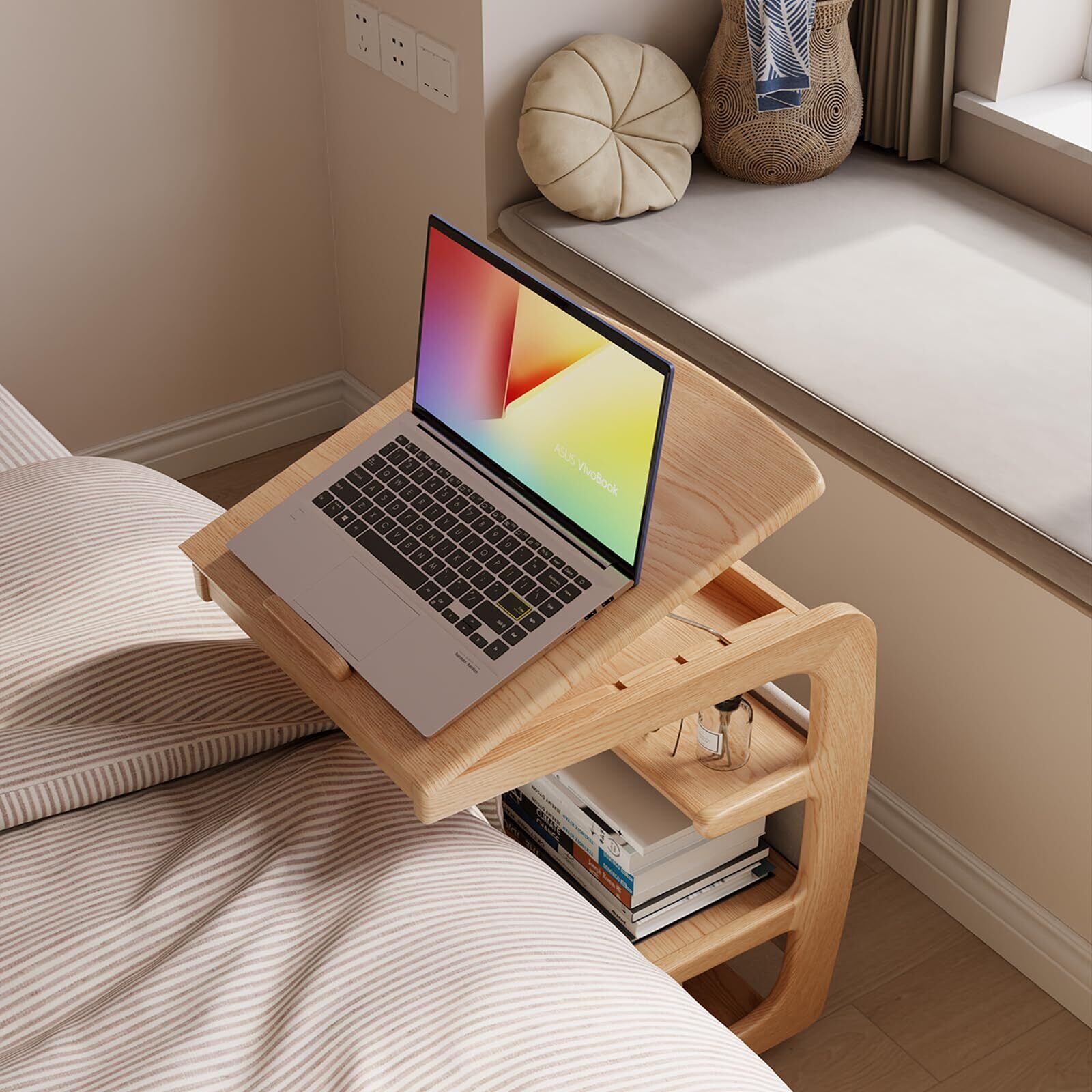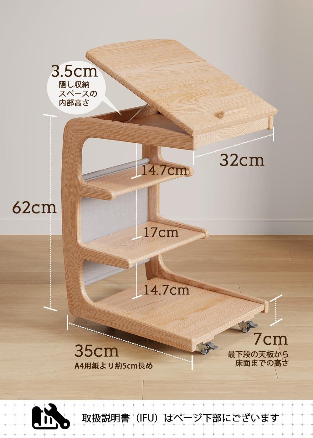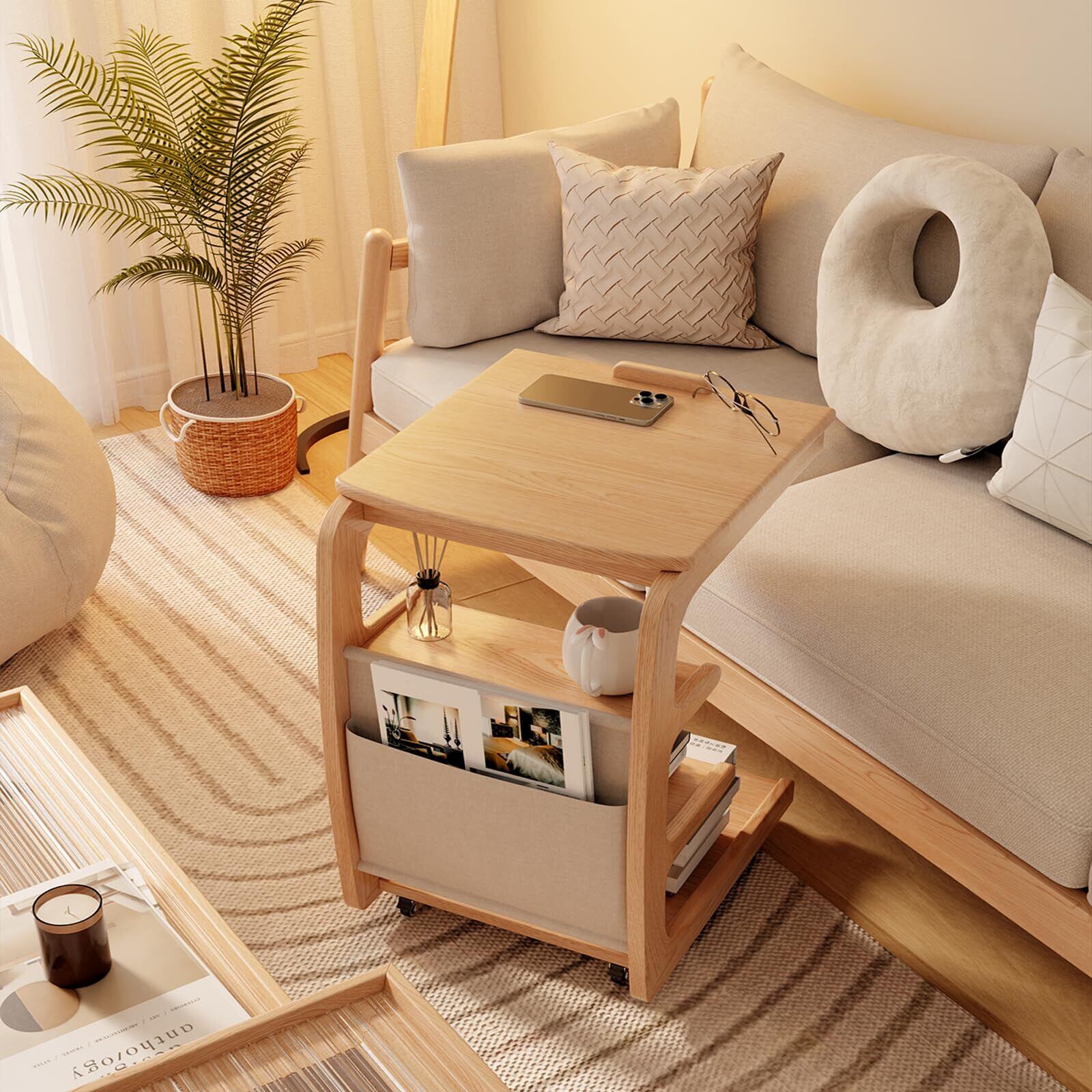 【人気商品】Mangowood サイドテーブル ベッド横 キャスター付き ソファーテーブル - 木製 ベッドサイドテーブル コの字 収納付き ソファ横 おしゃれ 無垢家具 | Cherry Blossoms