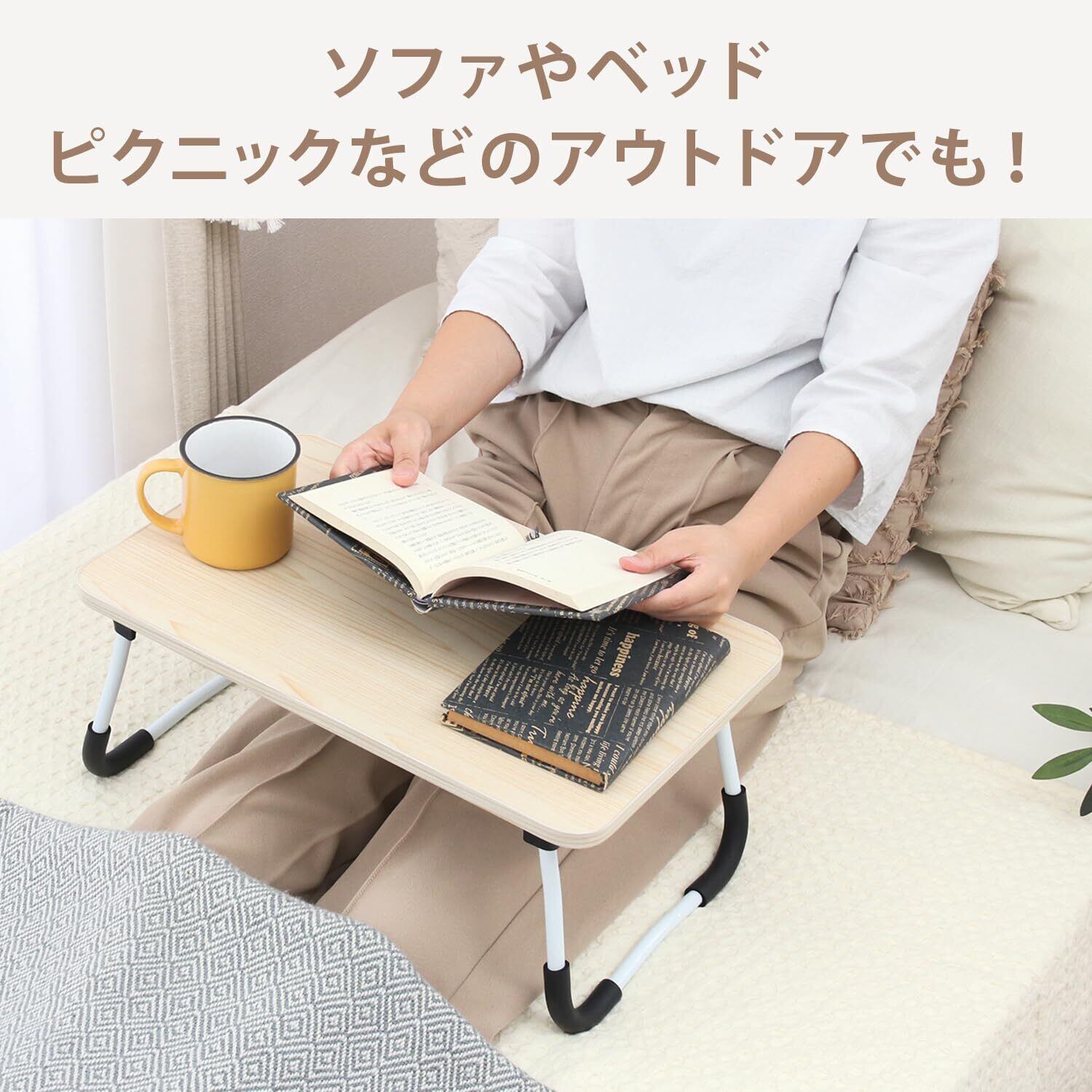 不二貿易 ミニテーブル 幅51.5×奥行30×高さ21cm ナチュラル 折りたたみ 軽量 ソファ ベッド 滑り止め付き 木目 28602