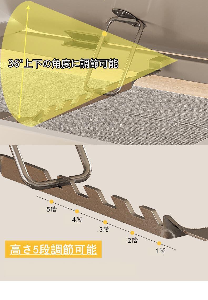 【36°角度調整可能!快適オフィス/学習 テーブル】最大の特長!天板が0°~36°の間で5段階に角度調整可能。ノートパソコン、タブレット、雑誌、スマホの使用に最適な視野を確保。デスクワークや学習時の肩・首の負担を軽減し、快適な姿勢を保ちます。この便利な テーブル 折り畳み は、ホームオフィスやリモートワークの強い味方。