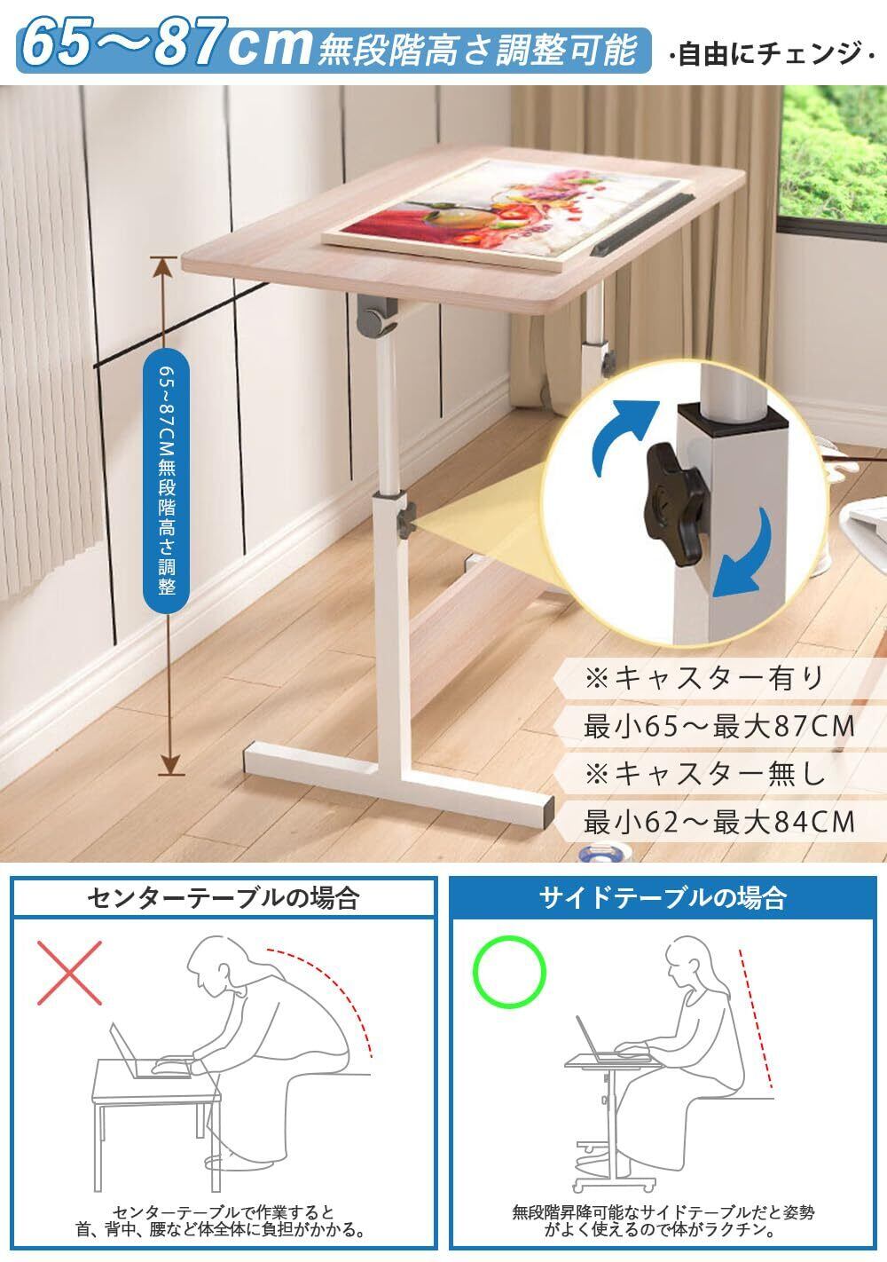 【人気商品】KUKERサイドテーブル キャスター付き 昇降式デスク 折りたたみデスク パソコンデスク ベッドサイドテーブル スタンディングデスク 介護用テーブル 移動式 オフィスデスク 高さ調節 幅80cm×奥行40cm×高さ65~87cm(ヴィンテージ) | Cherry Blossoms