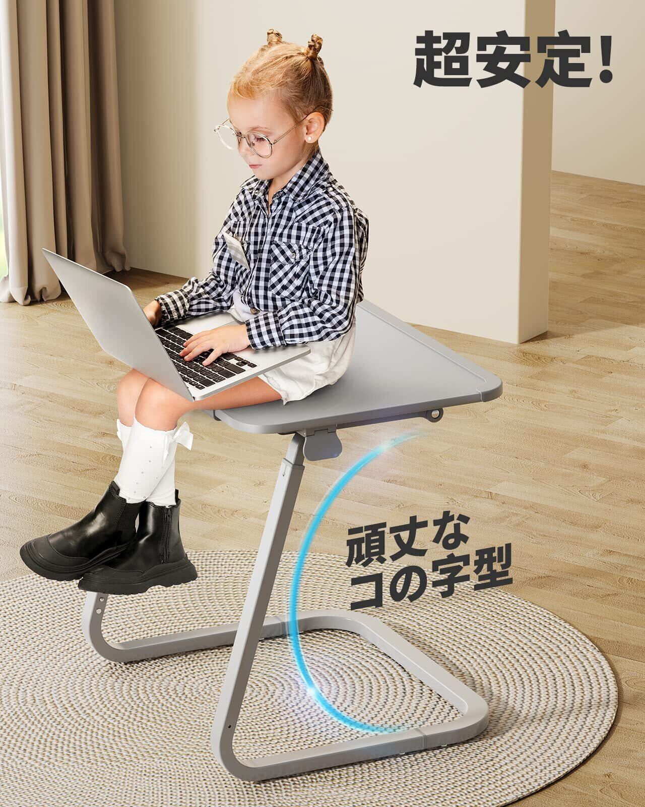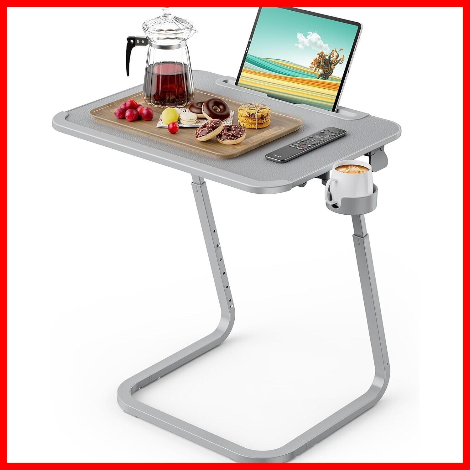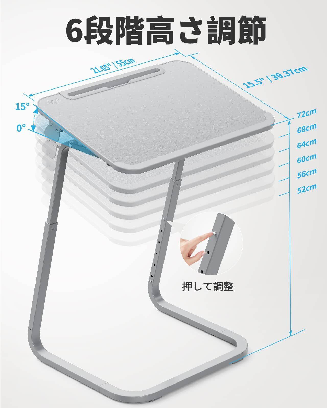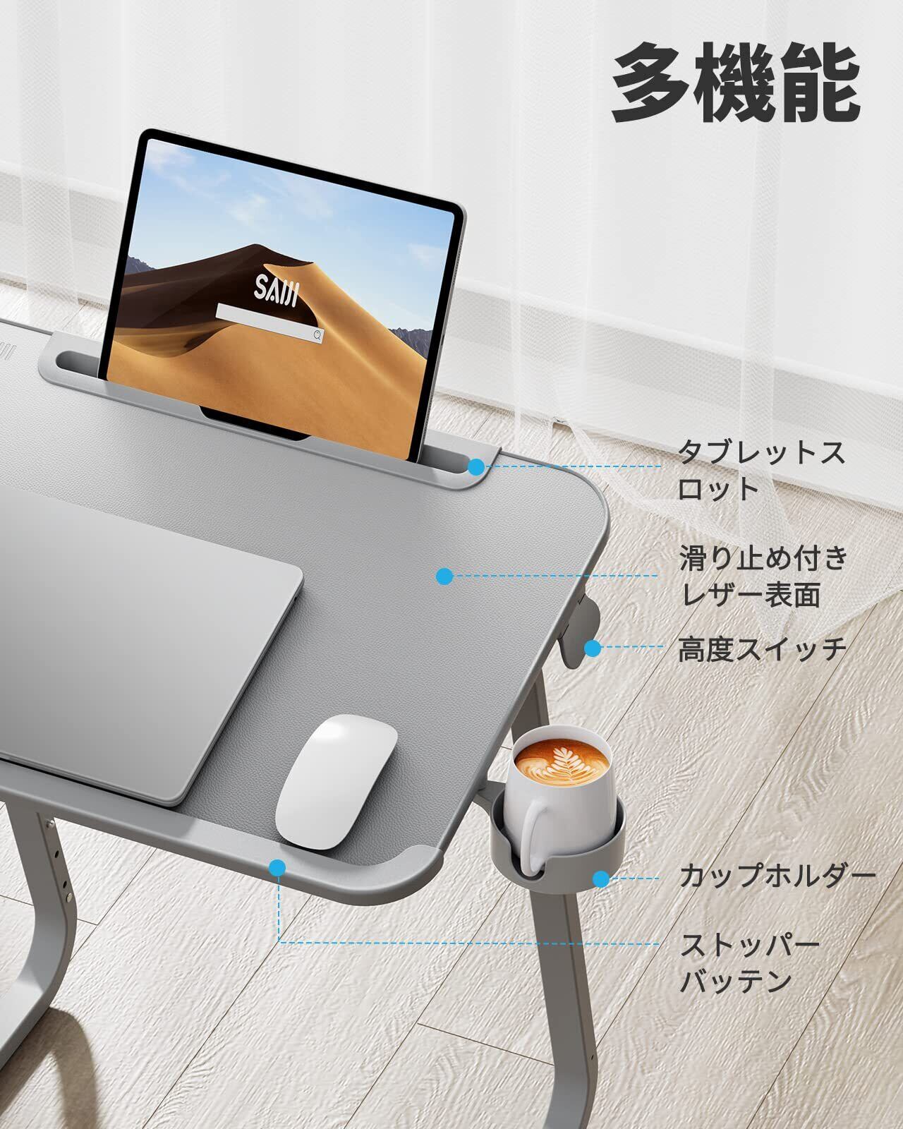 【新着商品】テーブル SAIJI サイドテーブル 安定性優れ 高さ調整 机 53cm-72cm 角度調整ミニテーブル 両用可能 ラップデスク 食事用 ベッドテーブル 滑り止め 大容量レーザー天板 カップホルダー付け (55cm*39cm グレー) | Cherry Blossoms