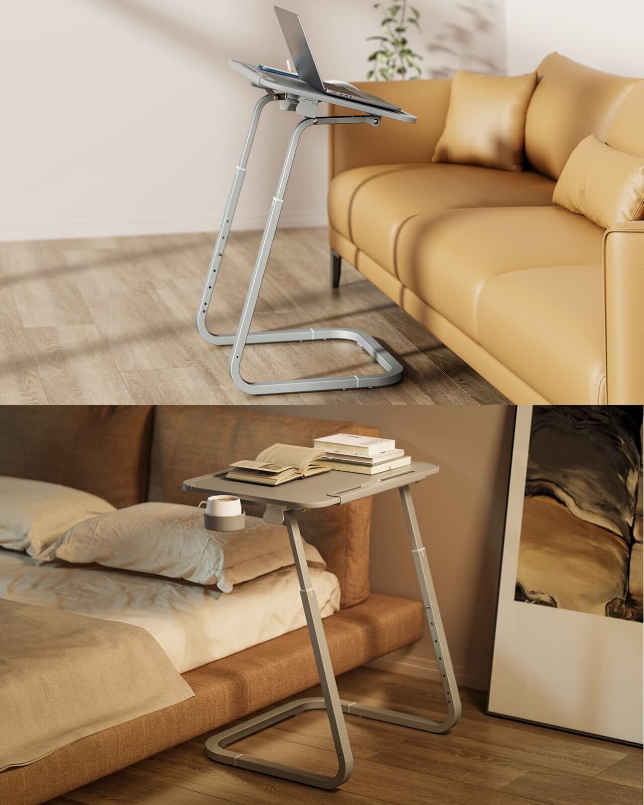 【多機能 机】このつくえは、ソファやベッドサイドで夕食のテレビトレイ、仕事や読書のためのワークステーション、ラップトップデスク、ソファのエンドテーブル、ベッドテーブルとして使用することができます。