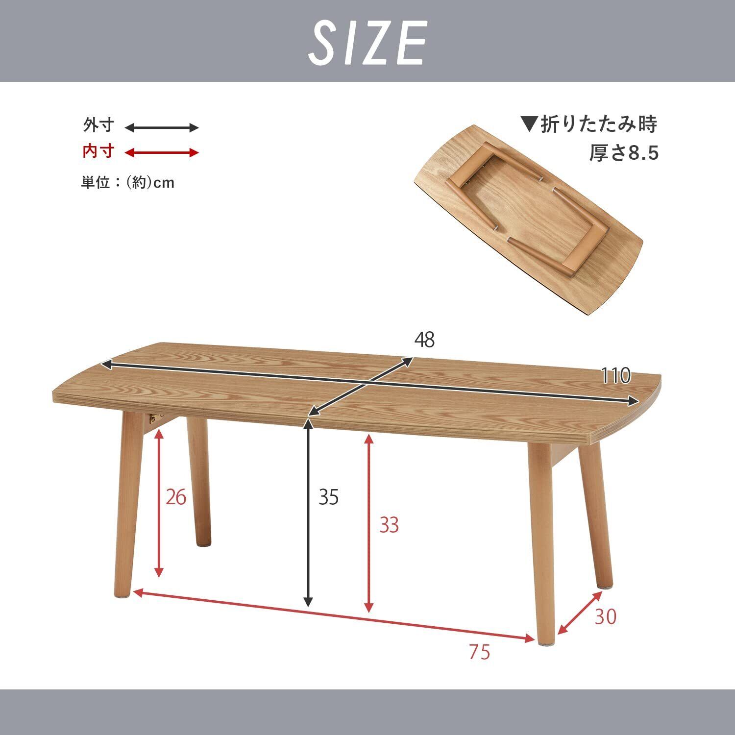 萩原(Hagihara) ローテーブル テーブル 長方形 折りたたみ 【天然木 タモ材使用】 ホワイト 完成品 幅110 奥行48 高さ35 MT-6423WS