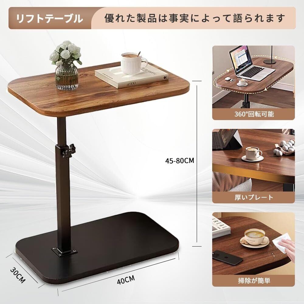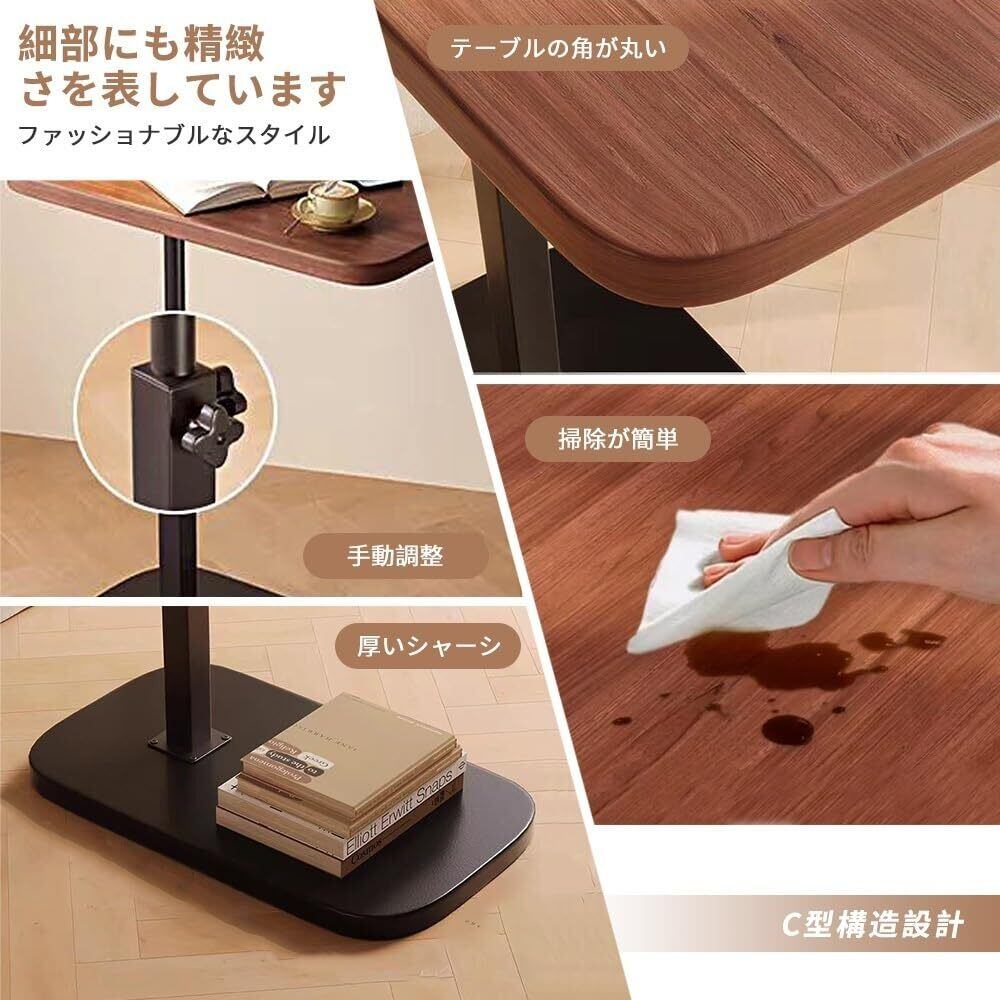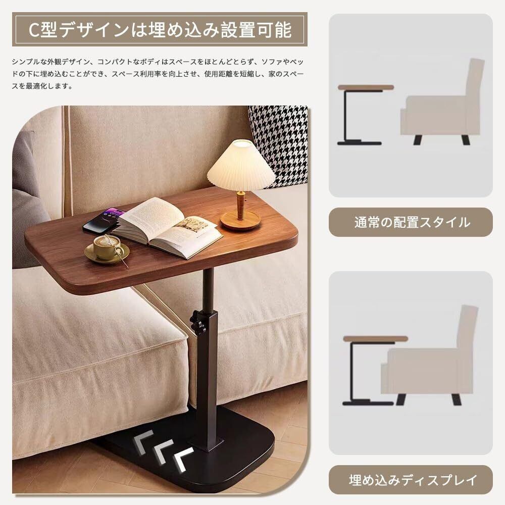 ソファ サイドテーブル さいどテーブルソファ横 side table 高さ調整 ベッドサイド 介護テーブル 防水 高温耐性 安定性 耐荷重性 耐久性 コンパクト 省スペース 組み立てが簡単 小型家具 家庭用 (くるみ色, 40*30cm)