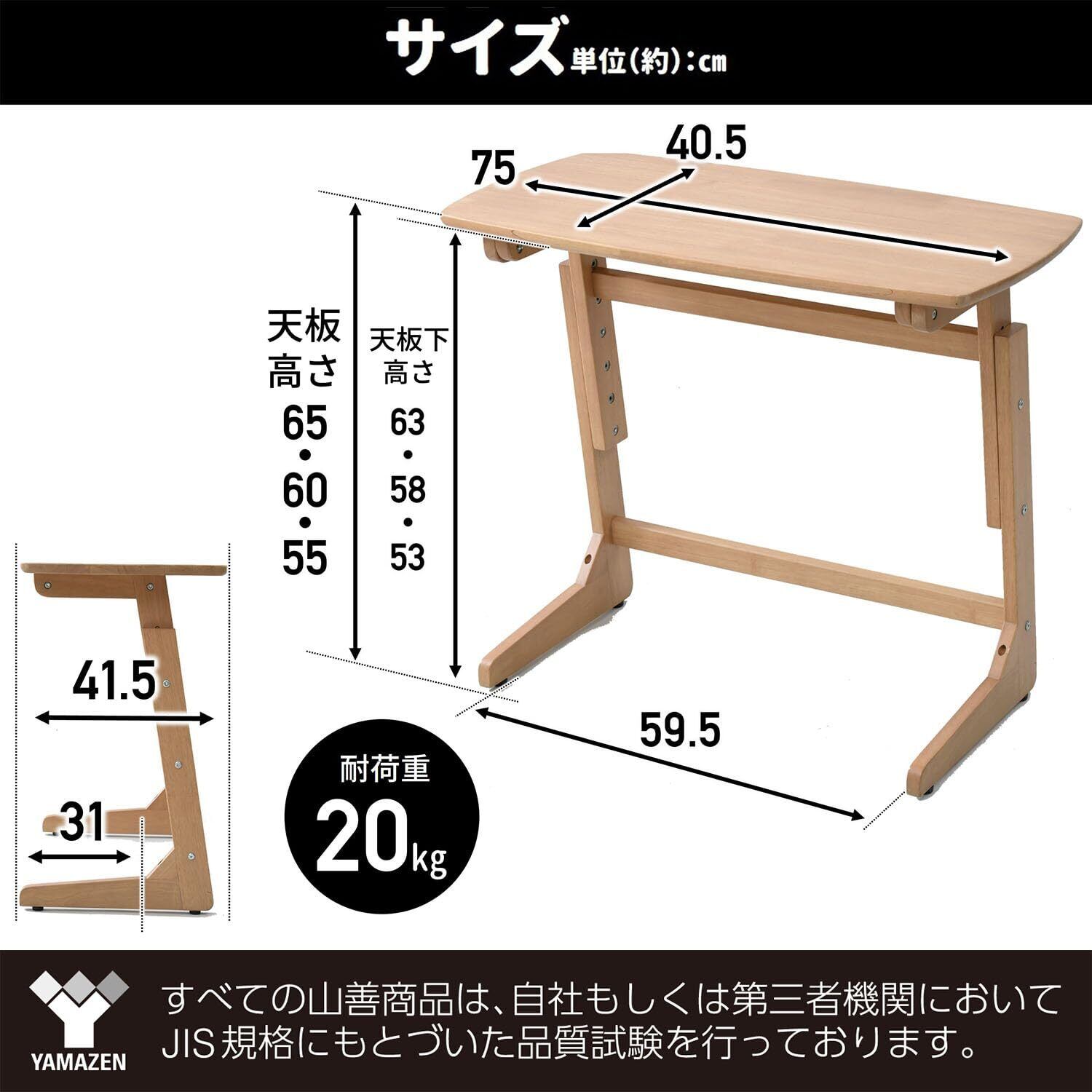 山善(YAMAZEN) 昇降 テーブル 高さ3段階調整 頑丈(耐荷重20㎏) アジャスター付 幅75×奥行41.5×高さ55/60/65cm 組立品 キウイカラー TZT-7542(KW) テレワーク