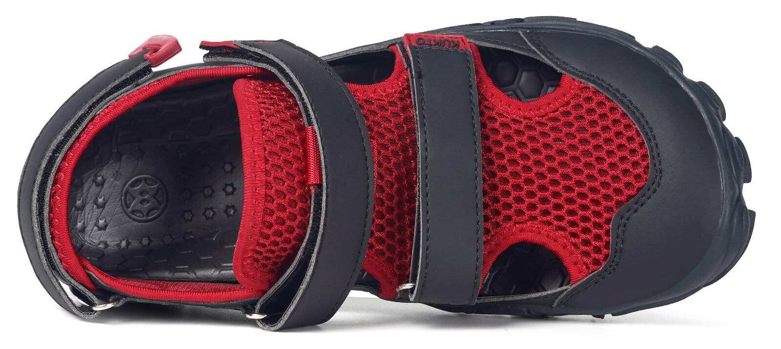 【履きやすい】ワイドトゥボックスで、つま先を圧迫しにくい。甲側とカカトと、3ヶ所のマジックテープでフィット感に応じて調整できて、着脱しやすいし、足形にもフィットしています。