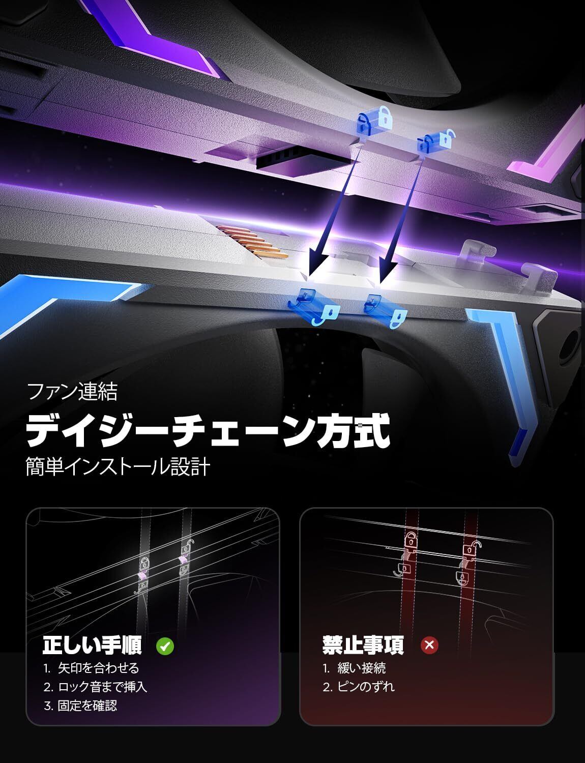 [ARGB神光同期]: 光と影の究極の調和—並列配置ARGB LEDにより、従来ファンの雑多な光効を解消。同梱の小型SATAコントローラーでマザーボードARGB未搭載機種も簡単制御。虹波/星閃きなど12種類の光モードを内蔵。ASUS Aura Sync/GIGABYTE RGB Fusion/MSI Mystic Lightに完全対応し、誰でも簡単に統一された光効体験を実現。旧型PCでも美しい光のアップグレードが可能に。