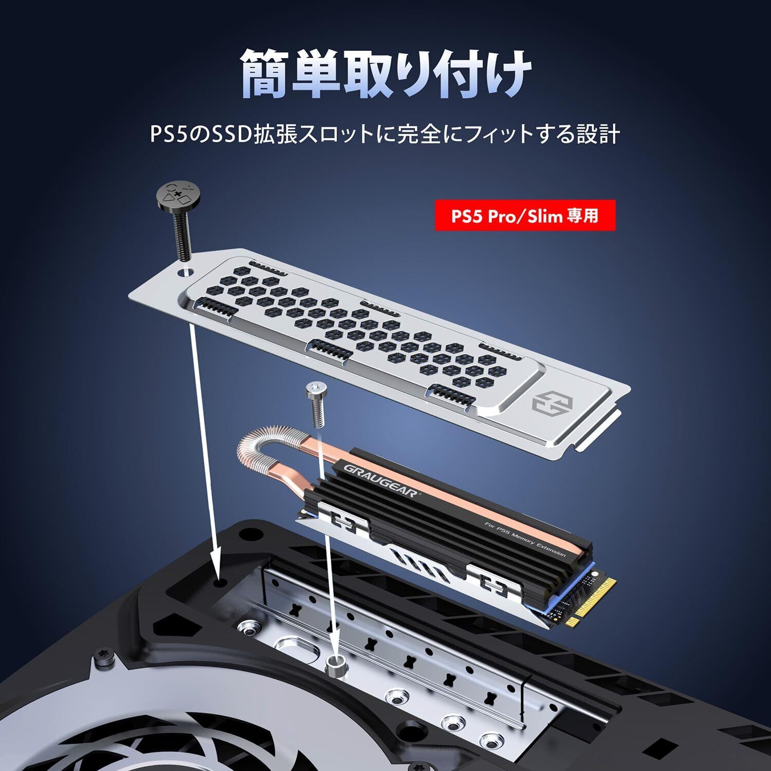 【在庫セール】GRAUGEAR PS5 Pro/Slim専用のM.2 2280 NVMe SSDヒートシンク、PlayStation 5 Pro/Slim対応の拡張スロットカバーと交換するタイプのヒートシンクについては、ダイレクトタッチヒート銅製ヒートパイプ アルミニウムフィン ダストフィルター、取り付け簡単 (PS5 Pro/PS5 Slim)